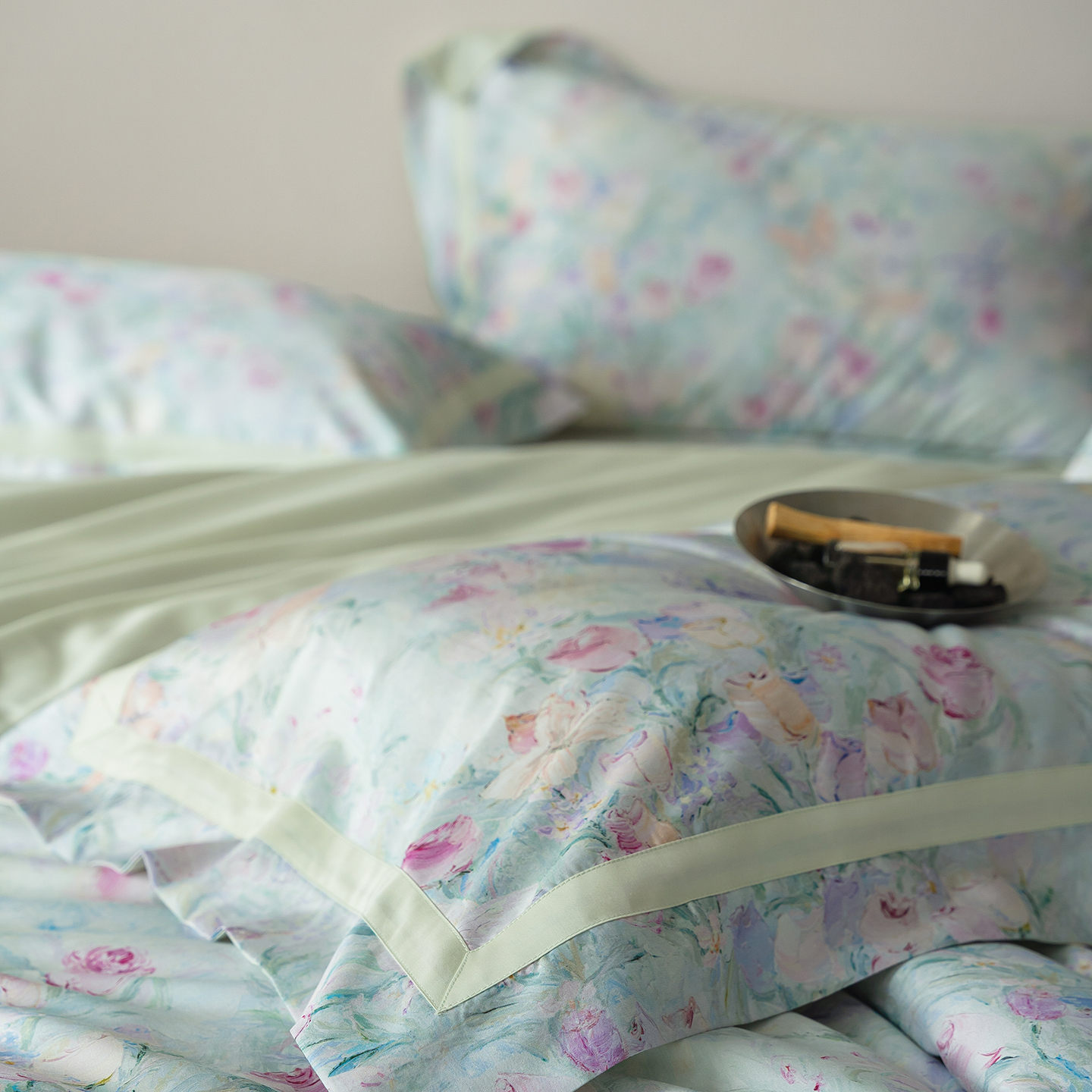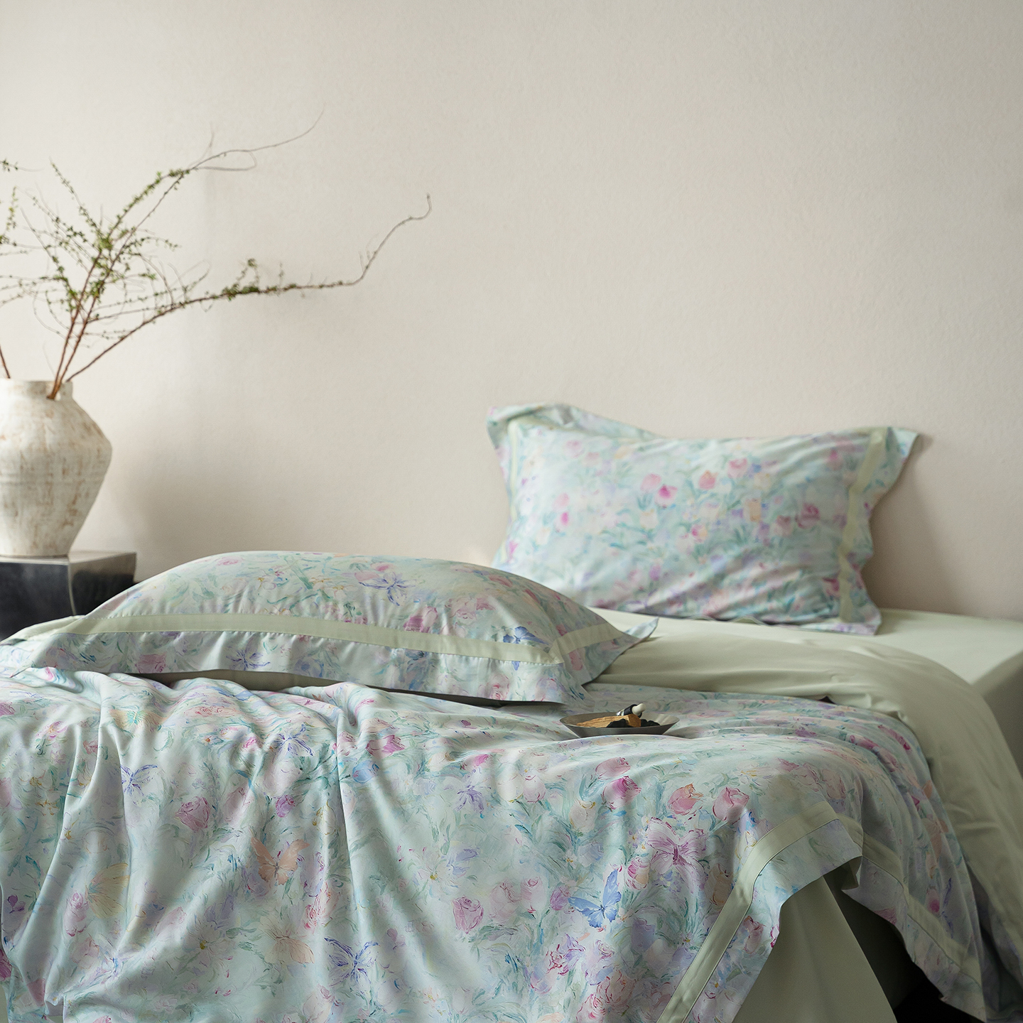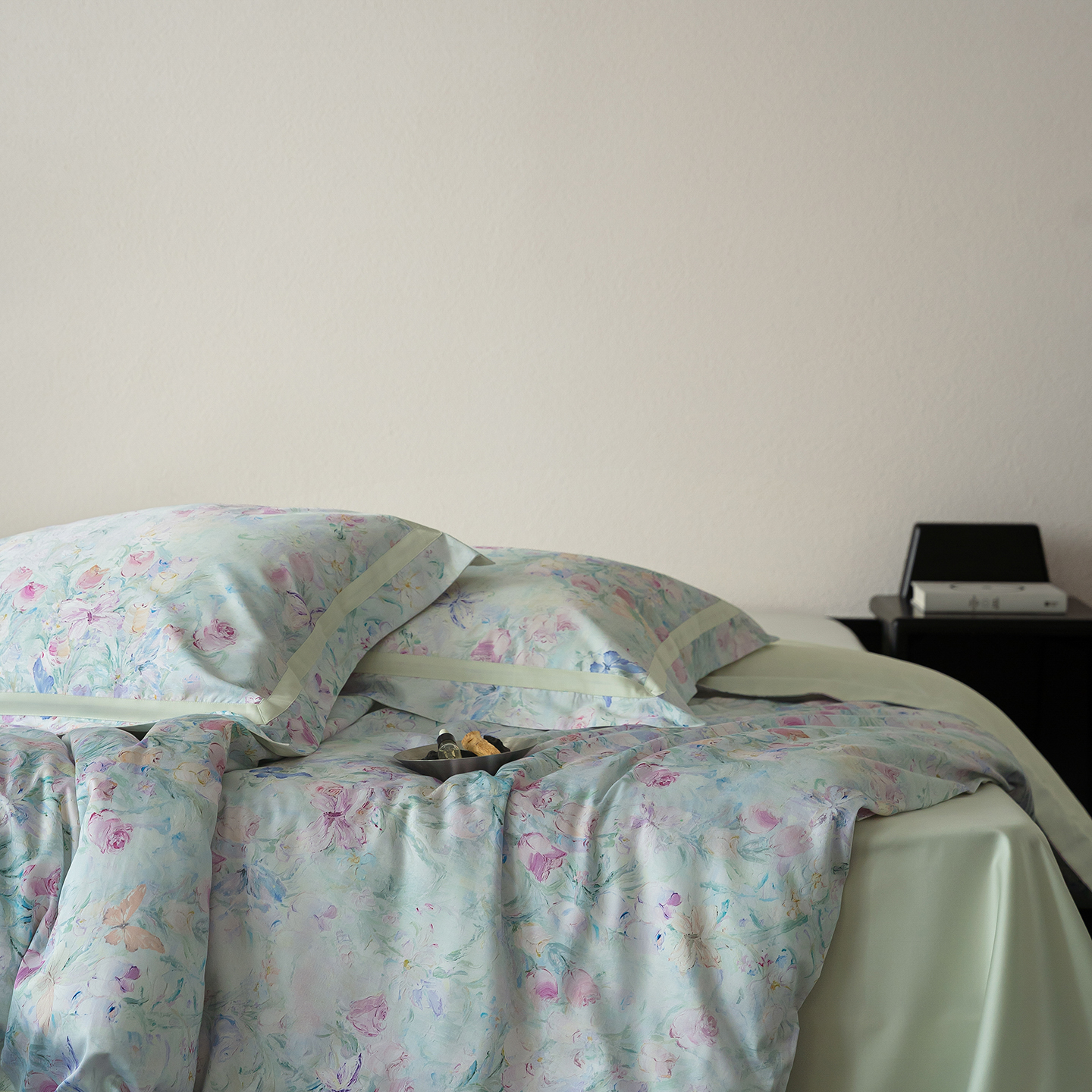 (总)花时间 2025新款100支天丝棉提花四件套,巴黎花语-绿