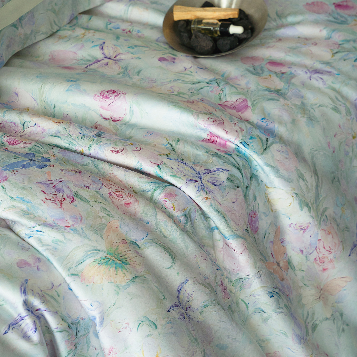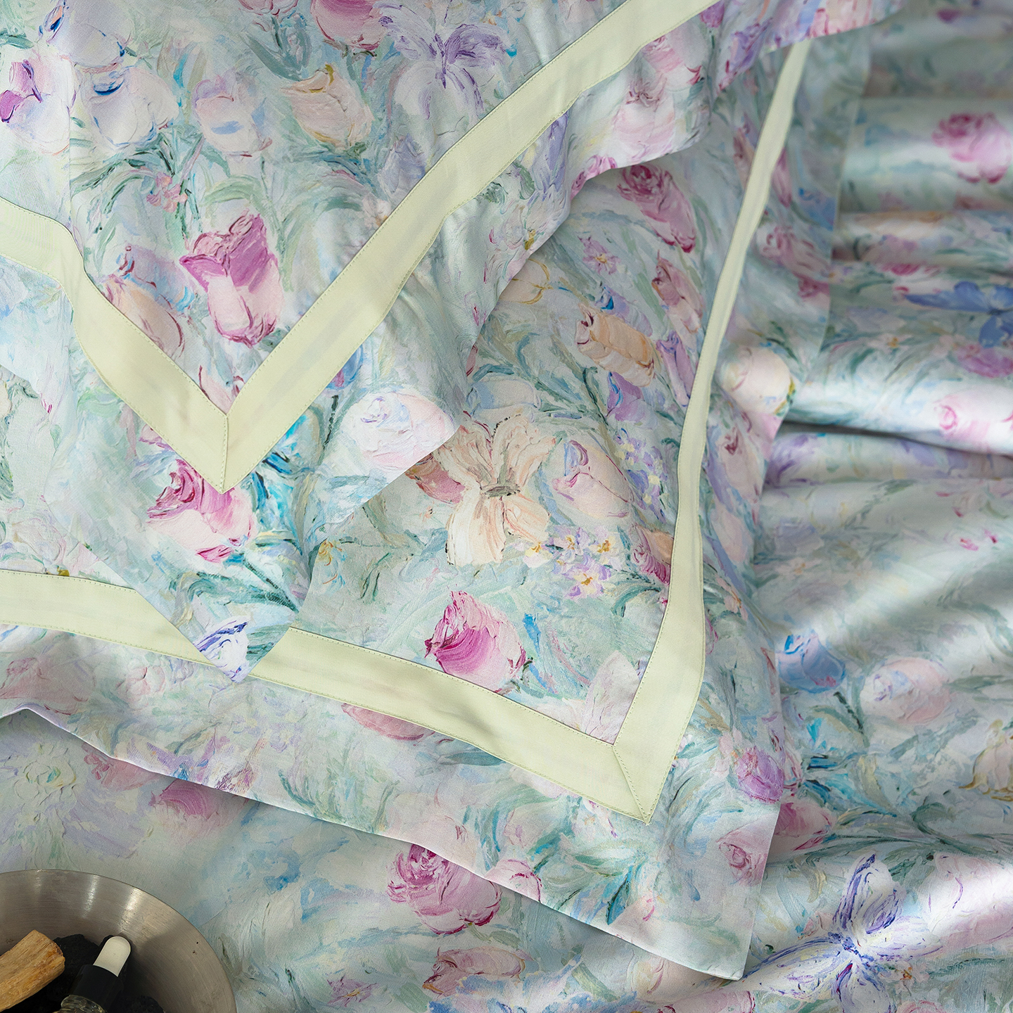 (总)花时间 2026新款60s天丝棉四件套 (会员减10 参与日常超级立减9折后不低于368/388),瑶池仙境-紫,郁见花海-绿