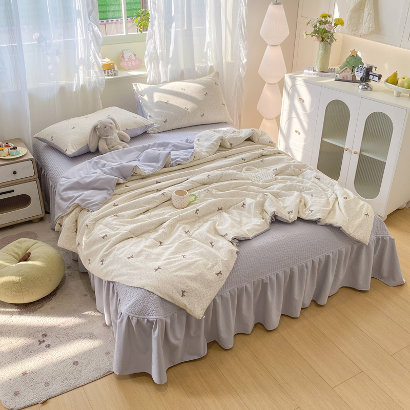 (总)优贝家纺 2026春夏新款韩系小清新水洗棉古法棉夹棉床盖四件套-风格二,杏芙萌犬,奶咖萌兔,时尚萌犬,桃粉花漾,甜心小熊,雾灰粉芙,星星萌宠,芋泥奶兔,芋雾花眠