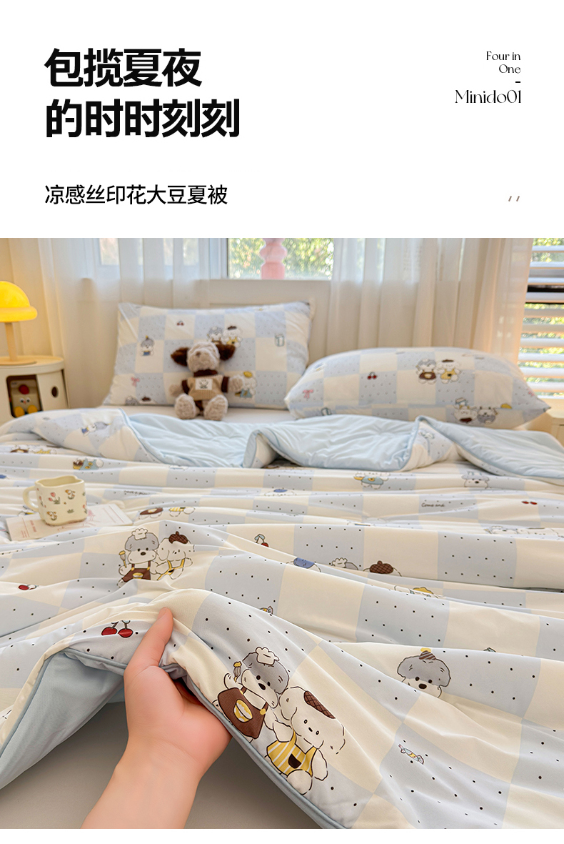 (总)景眠 2026新款全棉凉感双面大豆被夏被夏凉被空调被-版一,晚安天使,蛋糕狗,叮当熊,嘟嘟小熊,格子熊 粉,格子熊 蓝,好丽友,蝴蝶结,花间兔,花蔓,可爱女孩,淘气狗,甜心宝贝,童趣,樱桃布布