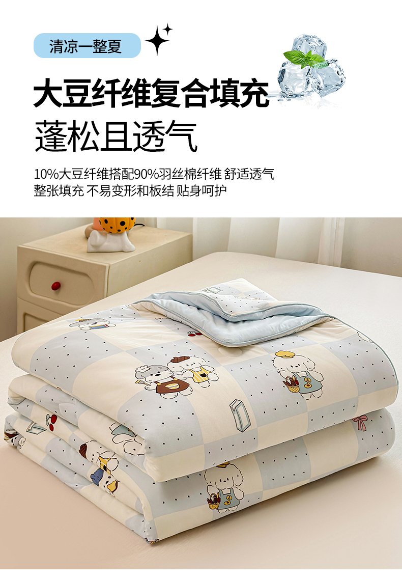 (总)景眠 2026新款全棉凉感双面大豆被夏被夏凉被空调被-版二,晚安天使,蛋糕狗,叮当熊,嘟嘟小熊,格子熊 粉,格子熊 蓝,好丽友,蝴蝶结,花间兔,花蔓,可爱女孩,淘气狗,甜心宝贝,童趣,樱桃布布