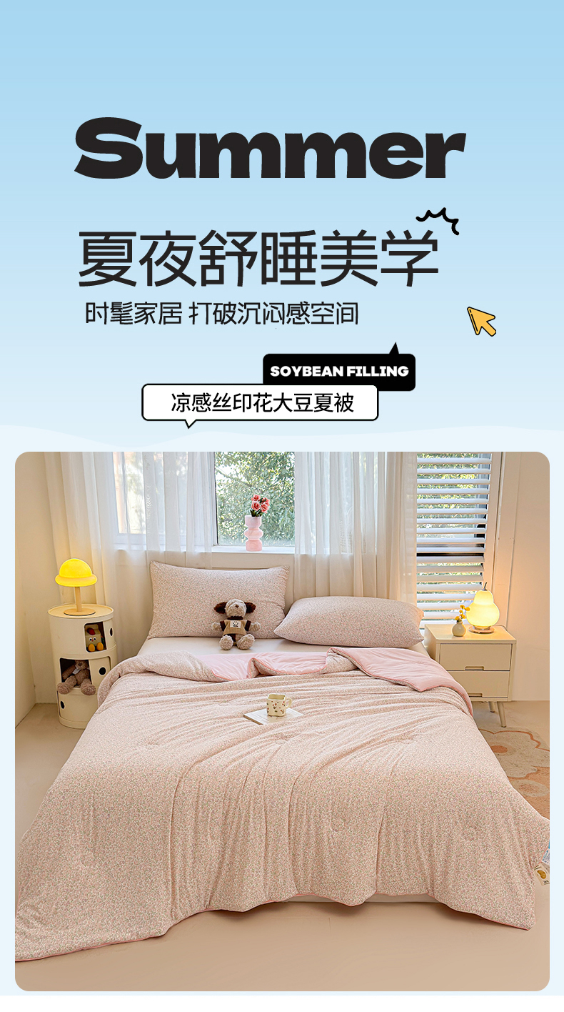商品名称:景眠 2026新款凉感丝印花仿锦氨大豆夏被夏凉被空调被 夏日铃兰