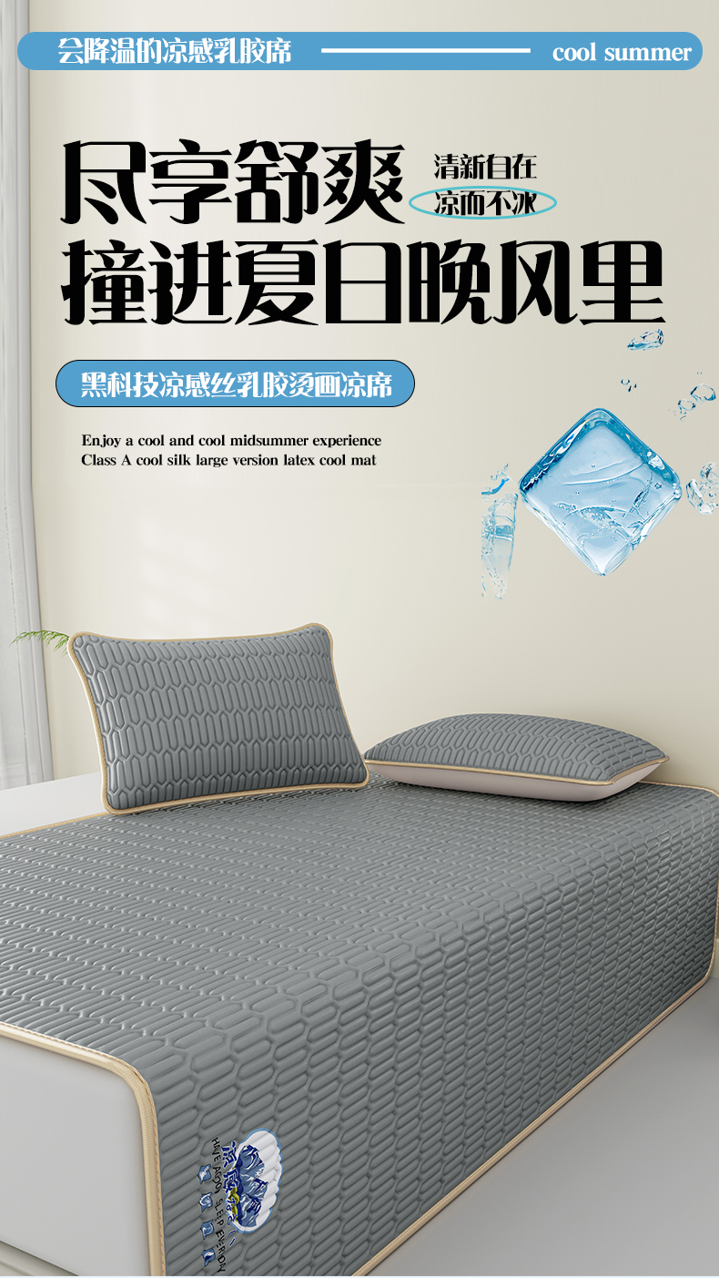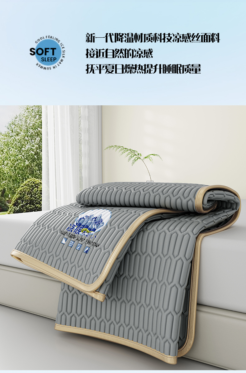 当前位置: 91家纺网 > 商品网购 > 床上用品 > 凉席 > 乳胶凉席 > 家品罗兰 2026新款夏季A类乳胶冰丝席纯色家用双人冰丝席宿舍席子软可机洗折叠床单软垫床垫夏天空调席两三件套 富士山-银灰