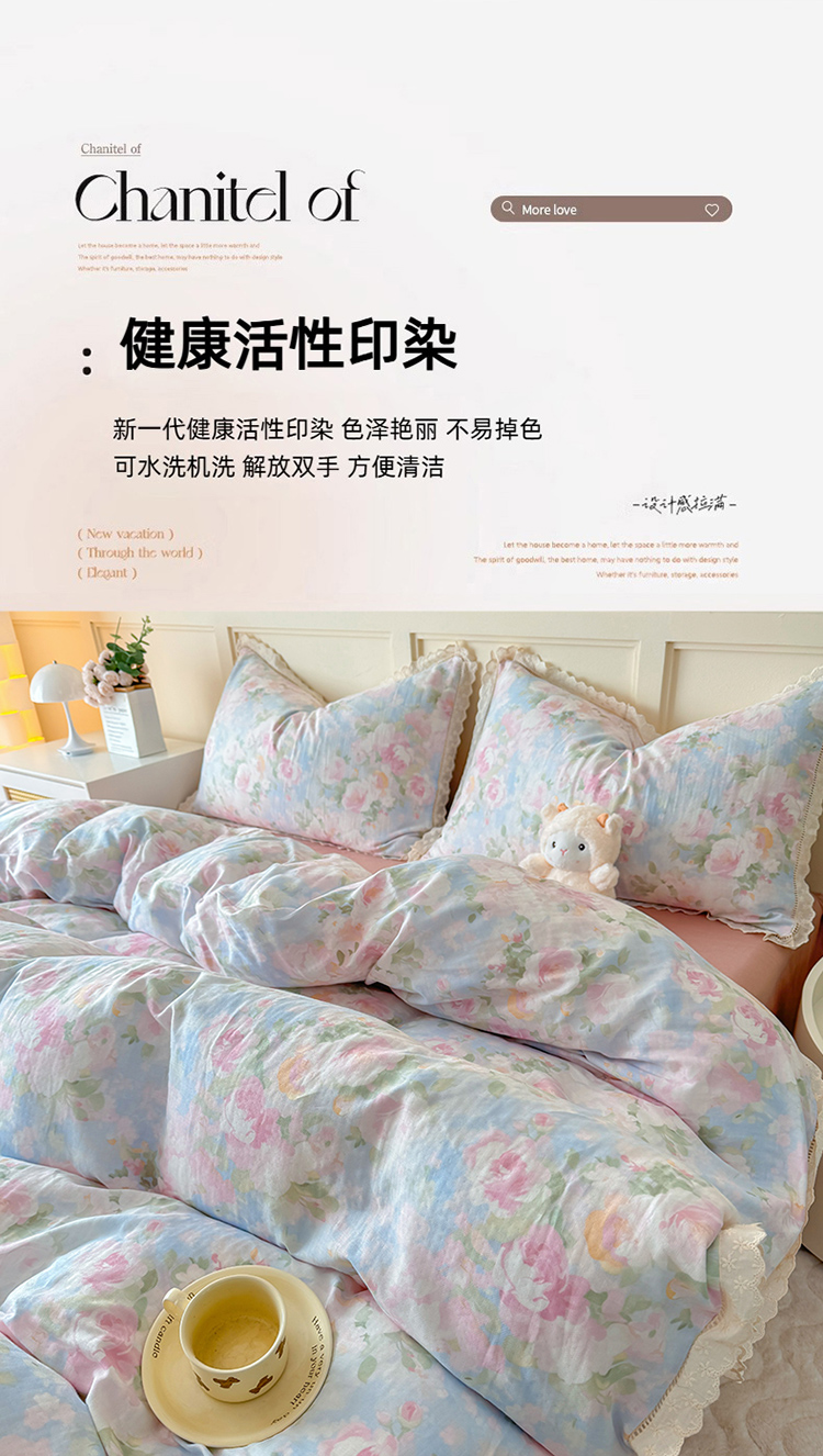 (总)2026高端韩版法式荷叶边印花纯棉全棉双层纱四件套复古赫本公主风少女花边全棉纯棉双层纱四件套,青黛,时光里里,疏影,暮色玫瑰,蔷薇恋人,爱丽丝,木槿,芳菲
