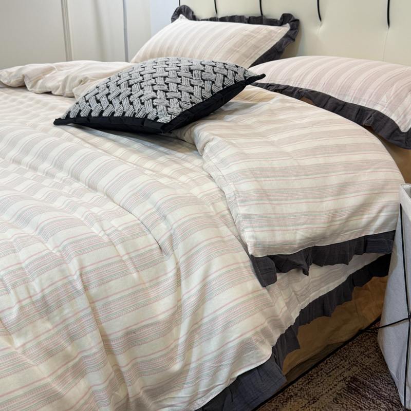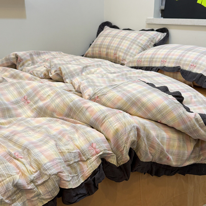 (总)【疆东】2026韩版蕾丝花边纯棉全棉双层纱四件套印花纯棉四件套法式赫本木耳花边全棉公主双层纱四件套,春日女孩,竖条纹咖,蝴蝶结粉,绿大格,彩虹条,爱心咖,波点绿,爱心绿,棕格,樱花,雪花兔,晴空,海盐气泡蓝,白茶,白玫瑰,玫瑰庄园,紫苏,波纹,小梨漫,乌梅子酱,甜心小兔粉,西海岸蓝,夕颜,小苍兰