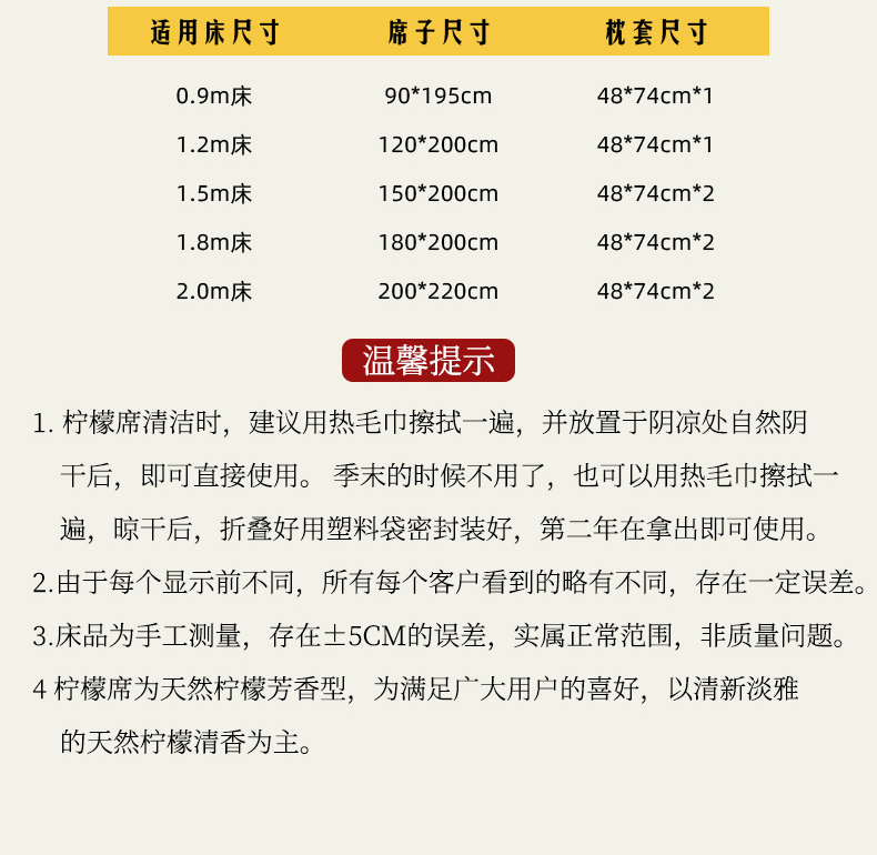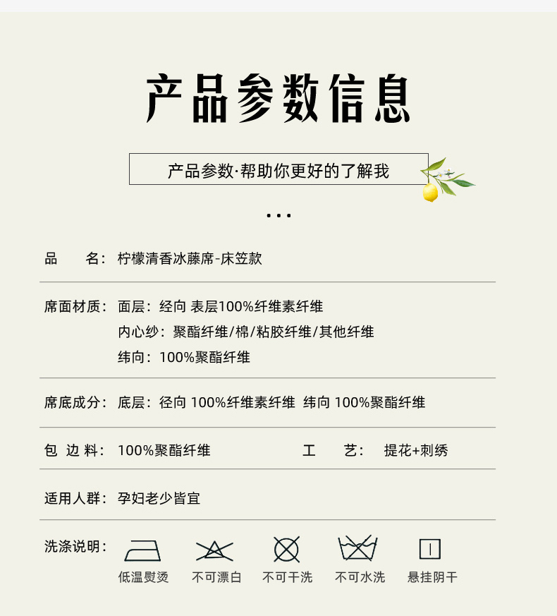 当前位置: 91家纺网 > 商品网购 > 床上用品 > 凉席 > 藤席 > 小牛席业 2026新款柠檬清香冰藤席(床笠款)凉席藤席冰藤席冰丝席竹席乳胶席豆豆席 柠檬清香席-床笠款-浅咖