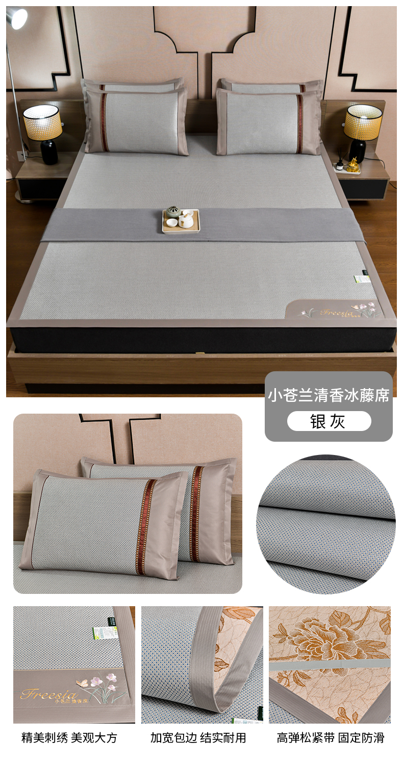 当前位置: 91家纺网 > 商品网购 > 床上用品 > 凉席 > 藤席 > 小牛席业 2026新款小苍兰冰藤-双面席系列凉席藤席冰藤席冰丝席竹席乳胶席凉感豆豆席 小苍兰清香冰藤席-银灰
