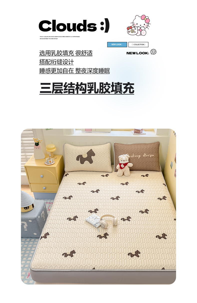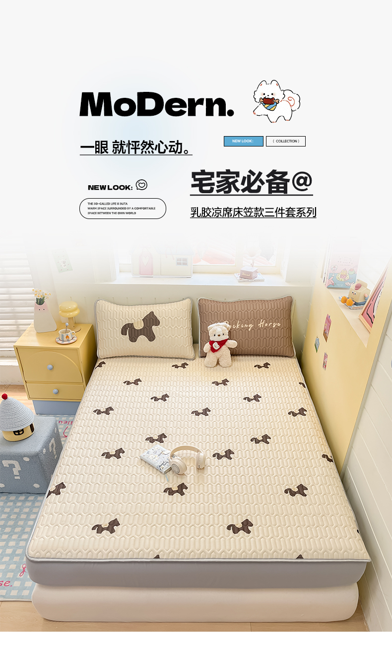 摩妮卡 2026春夏新款凉感丝印花小清新乳胶凉席席子床笠款三件套 解忧小马