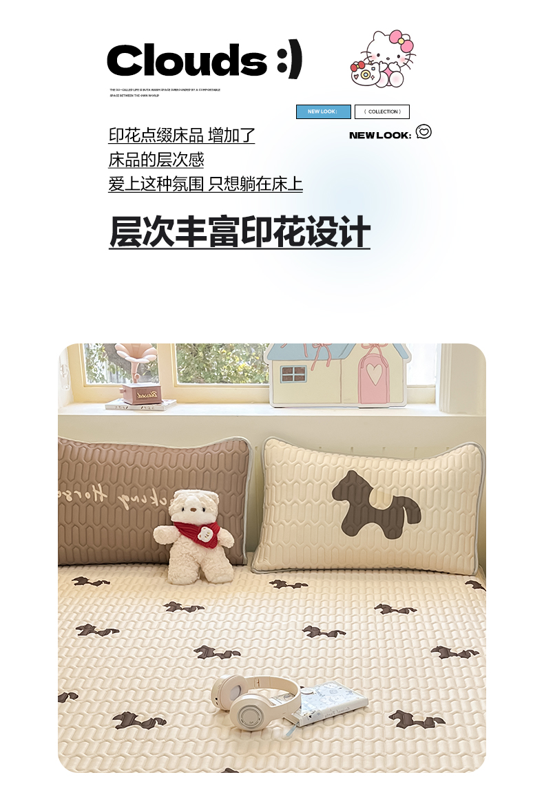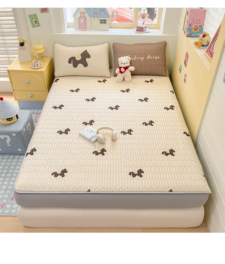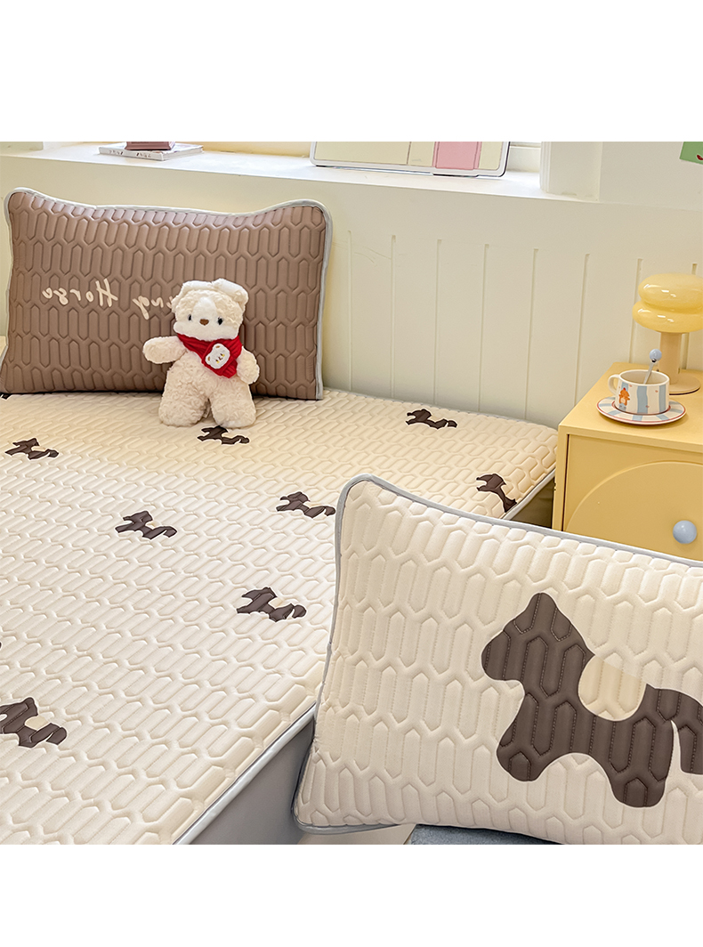 商品名称:摩妮卡 2026春夏新款凉感丝印花小清新乳胶凉席席子床笠款三件套 解忧小马