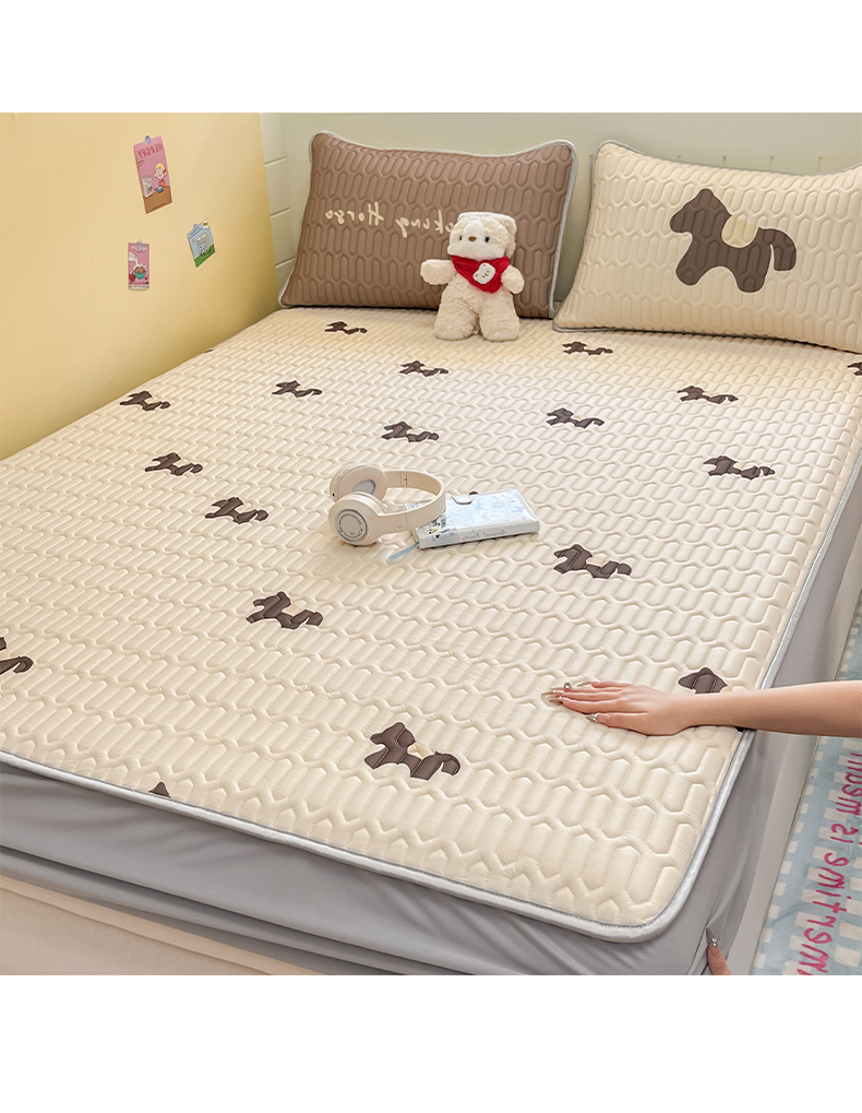 (总)摩妮卡 2026新款水洗棉夹棉防水床褥床垫款三件套,几何-卡其,几何-奶白,几何-浅粉,几何-天蓝
