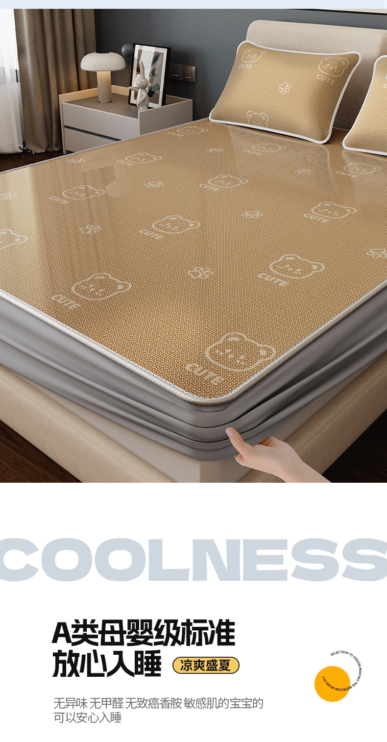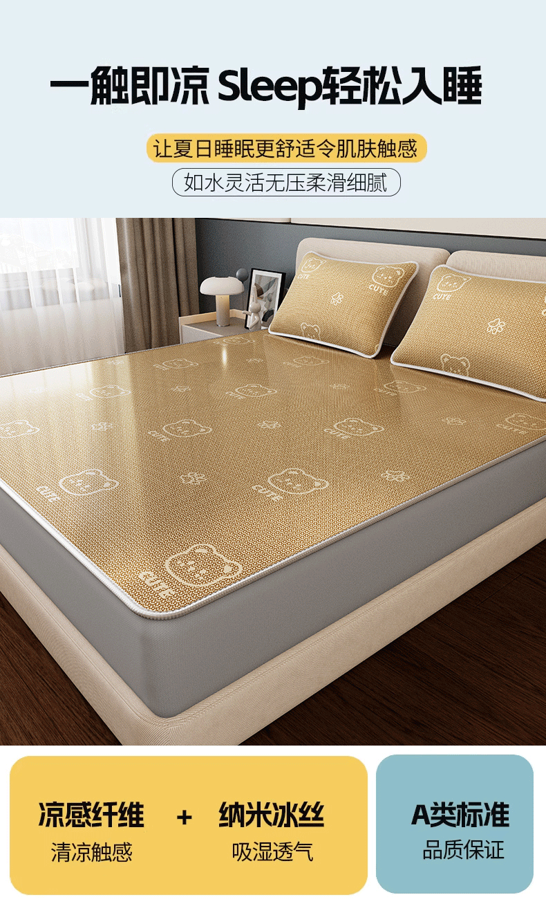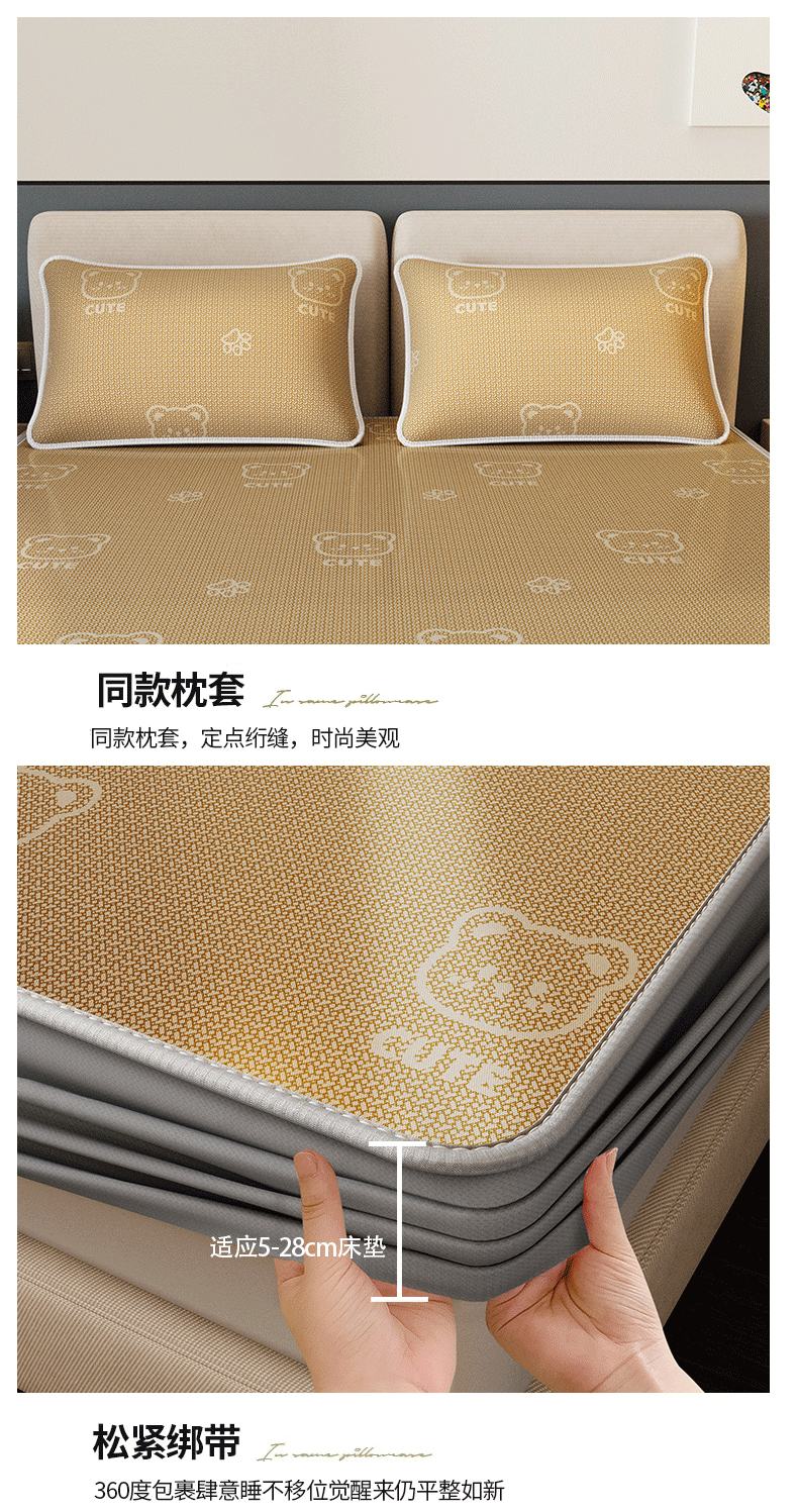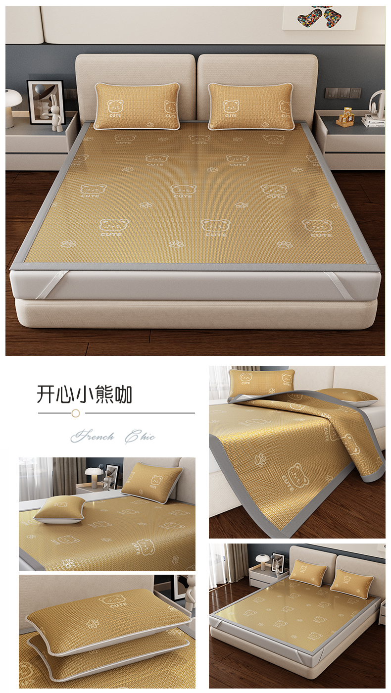 当前位置: 91家纺网 > 商品网购 > 床上用品 > 凉席 > 凉席套件 > 好福居 2026新款A类冰感抑菌印花冰丝席凉席-床笠款-床席款 开心小熊咖-床笠款