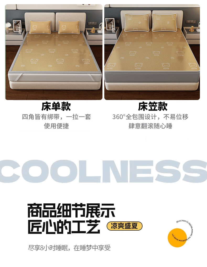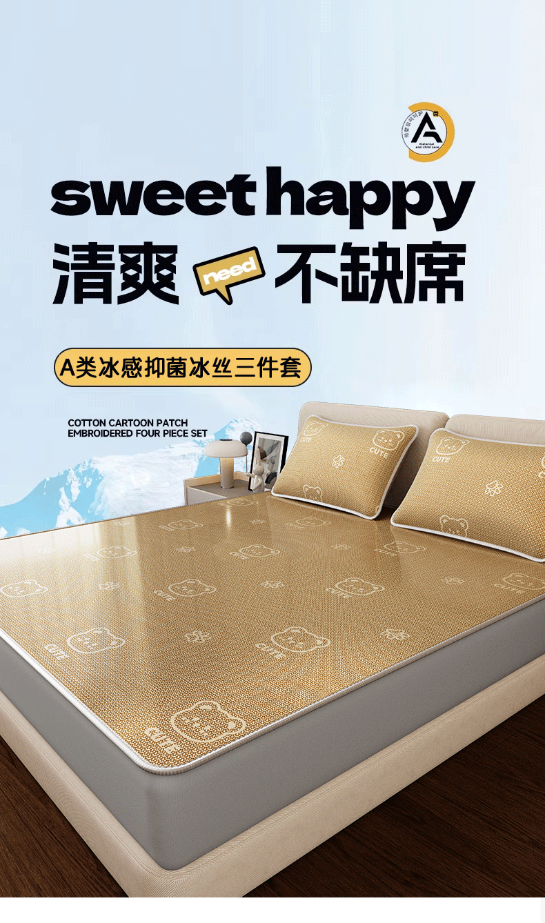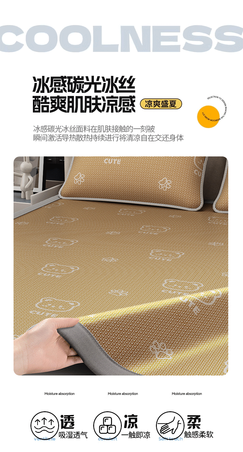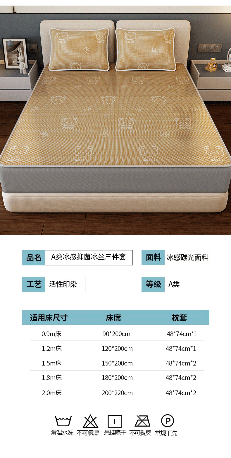 当前位置: 91家纺网 > 商品网购 > 床上用品 > 凉席 > 凉席套件 > 好福居 2026新款A类冰感抑菌印花冰丝席凉席-床笠款-床席款 开心小熊咖-床笠款