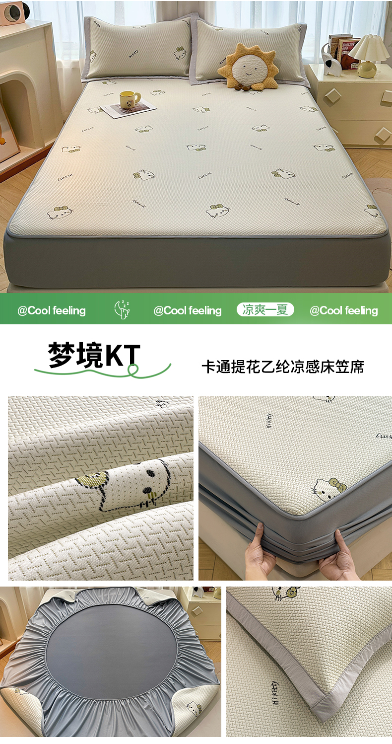 (总)织雅漫 2026春夏新款卡通乙纶冰豆豆凉席席子-床笠款,粉独角兽-床笠款,可爱布布-床笠款,腊肠小狗-床笠款,蓝蓝小熊-床笠款,梦境KT-床笠款,条纹小象-床笠款