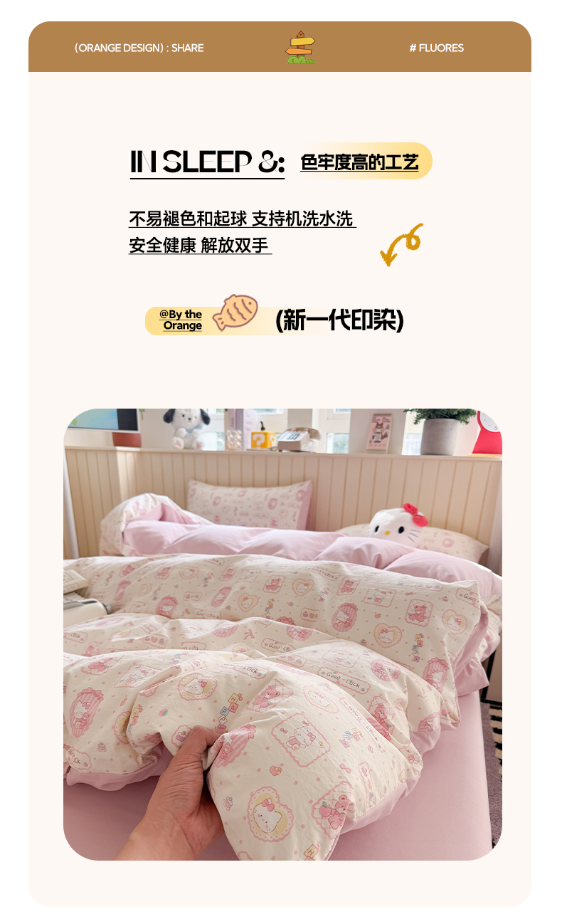 鑫佳居 2026新款古法仿棉小清新印花单床单 k蒂猫,k蒂猫