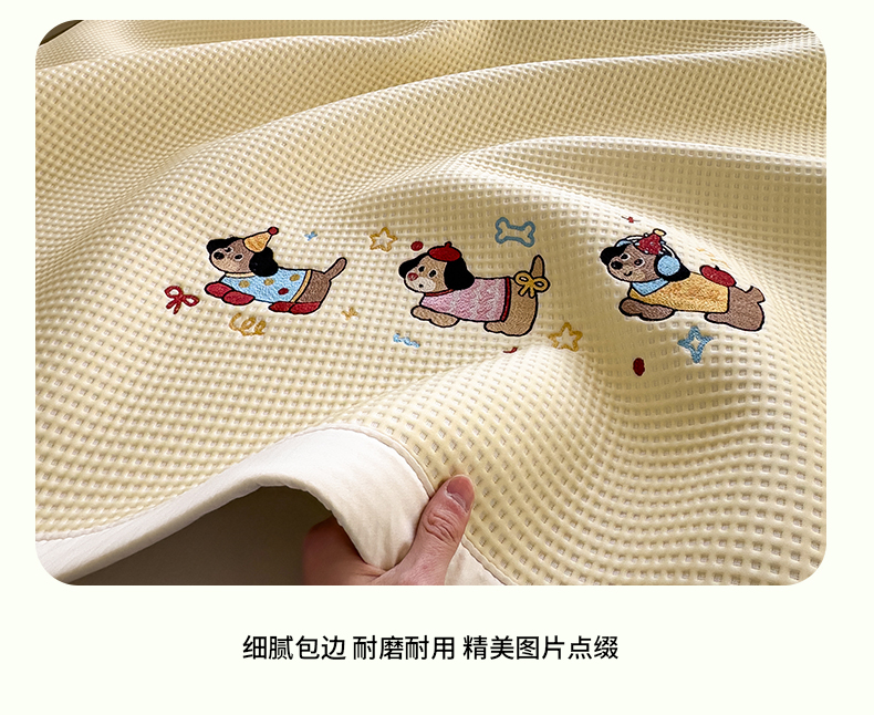 当前位置: 91家纺网 > 商品网购 > 床上用品 > 凉席 > 凉席套件 > 孩子王家纺 2026春夏新款乙纶冰豆豆凉席凉感值过0.21冰丝席-华夫格绣花空调软席凉席席子 可可喵派 床笠款