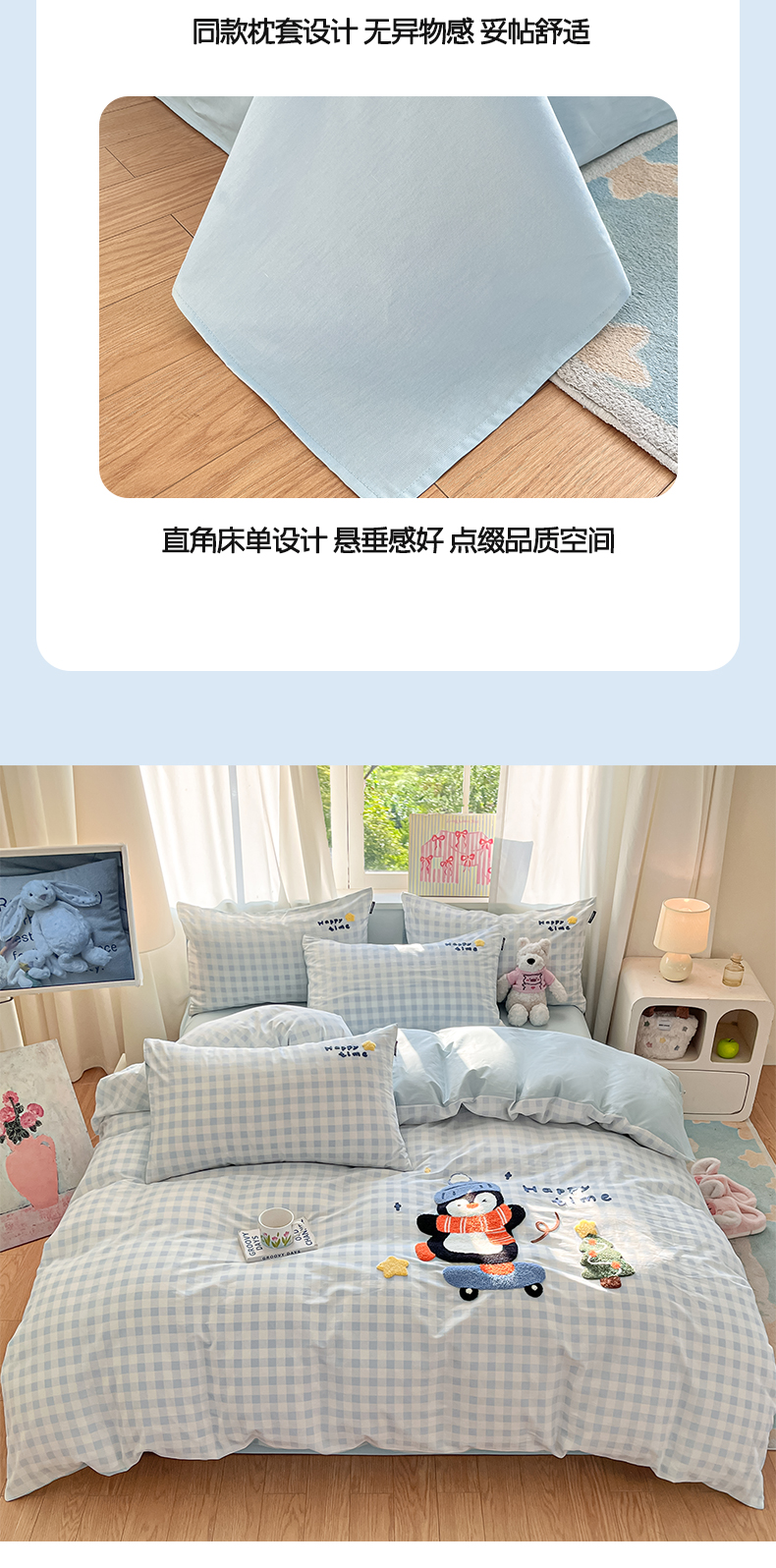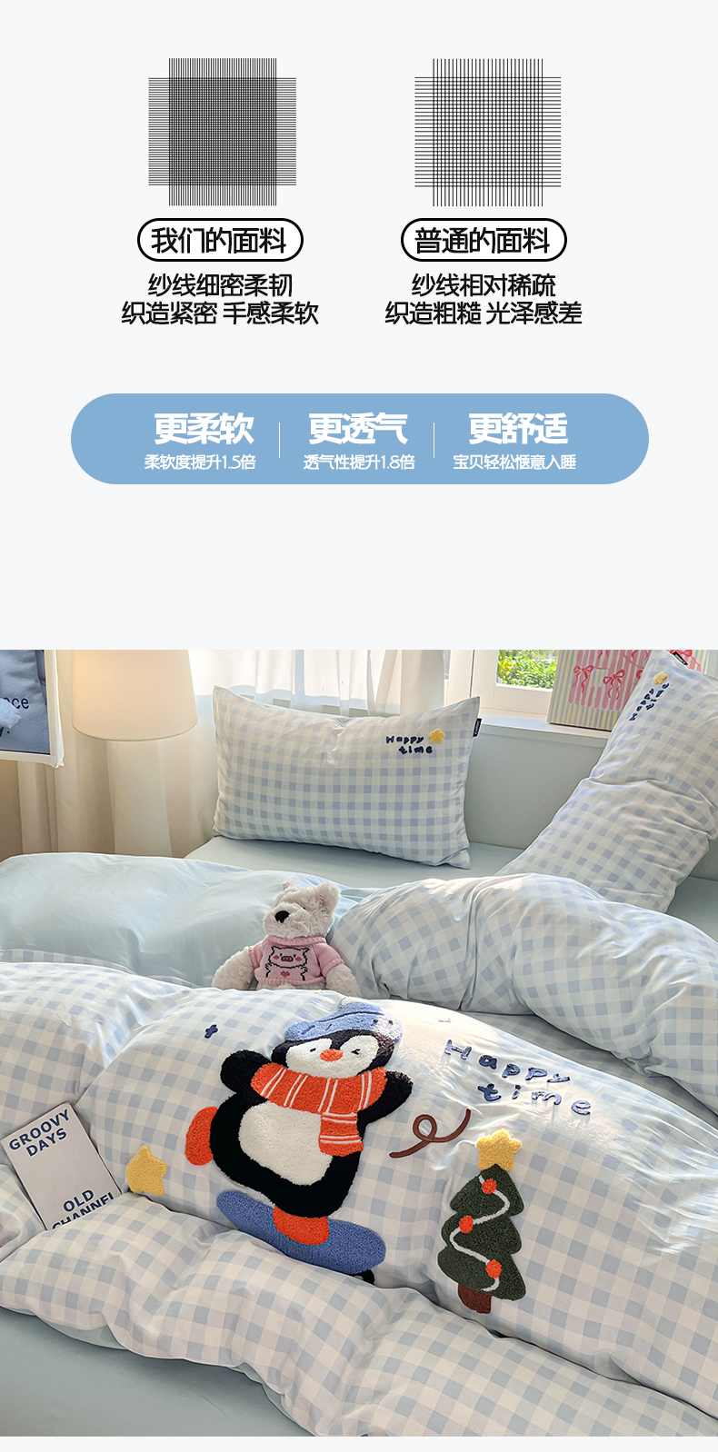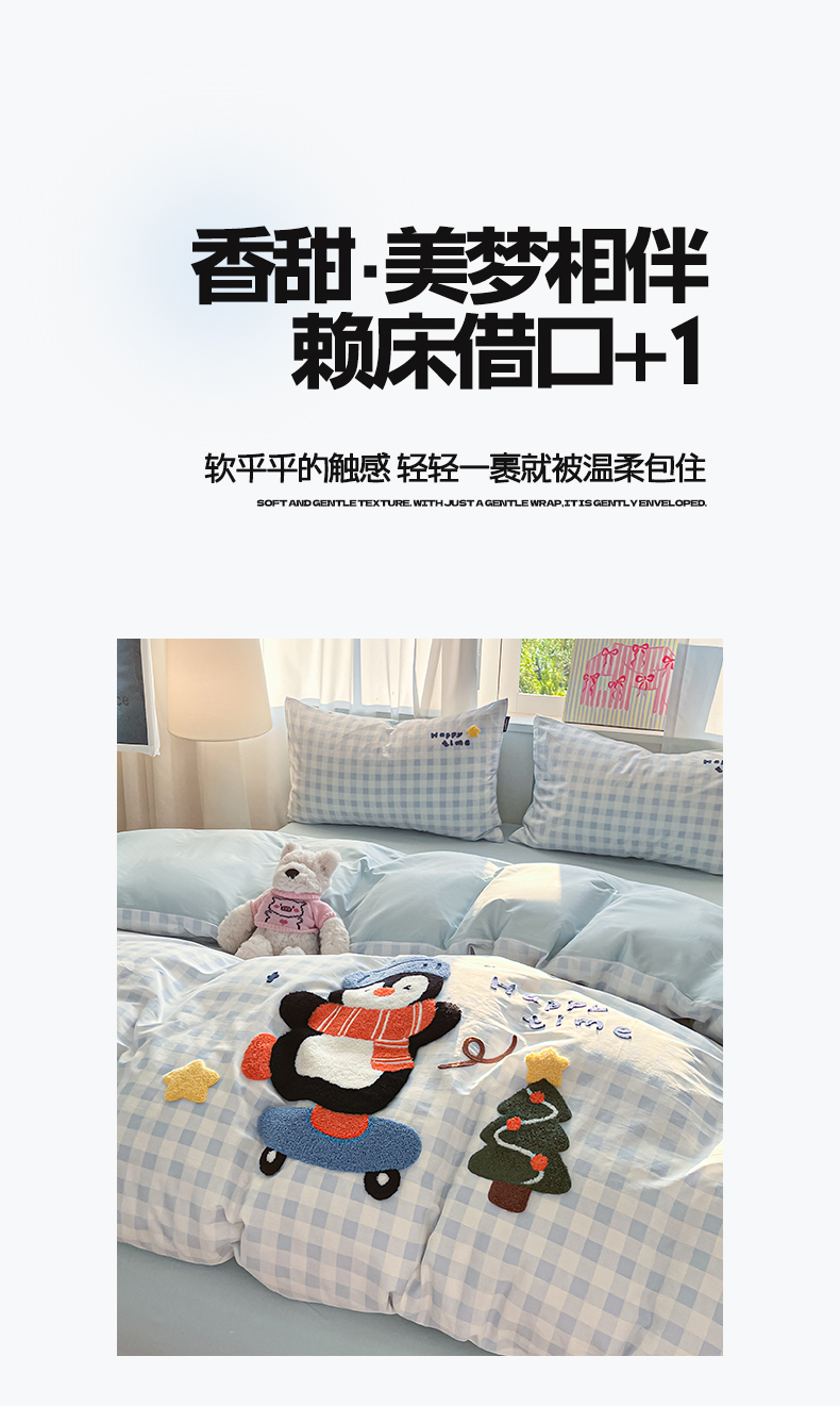 商品名称:涵宸家纺 2026新款全棉印花毛巾绣四件套 活力企鹅