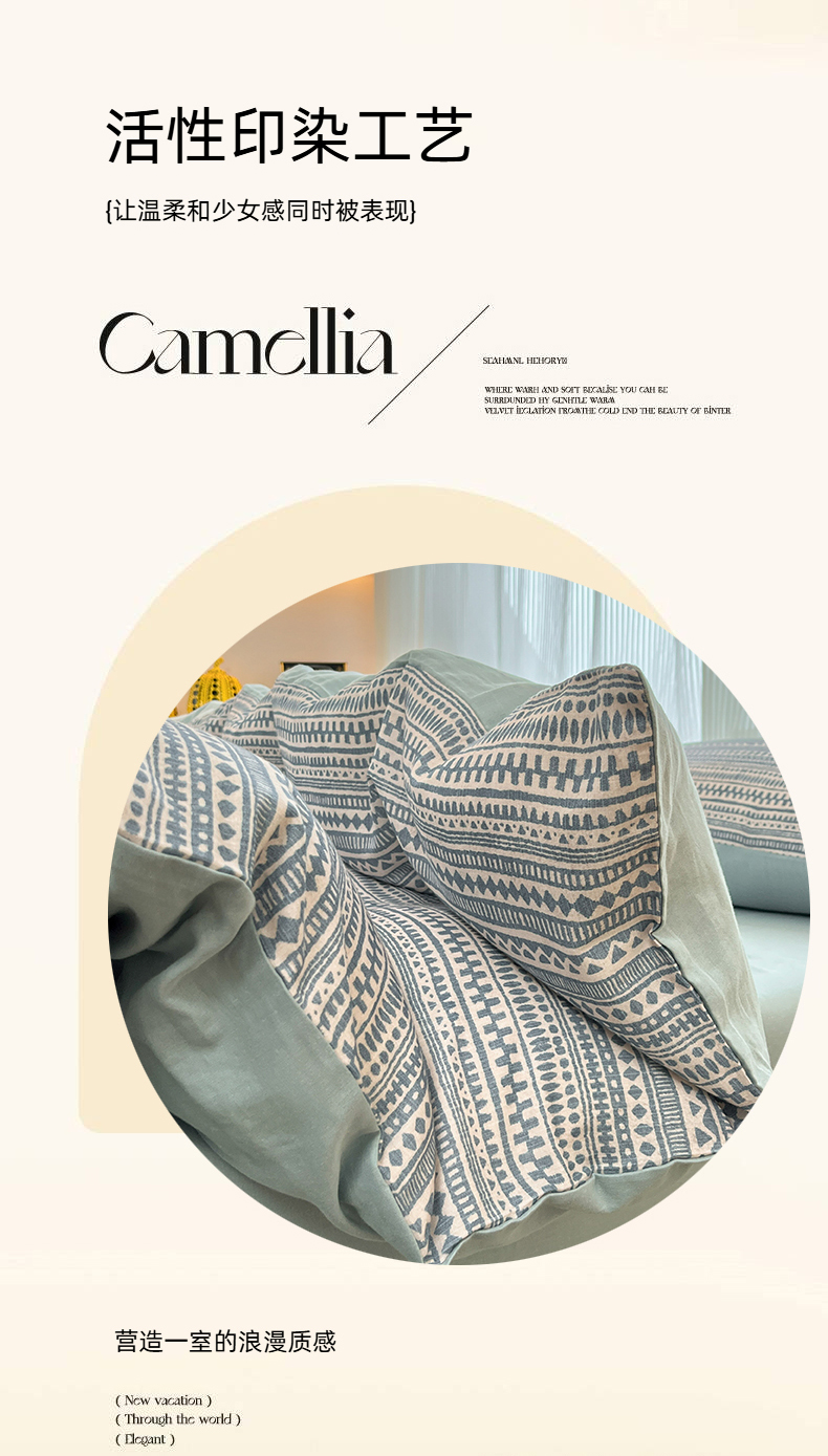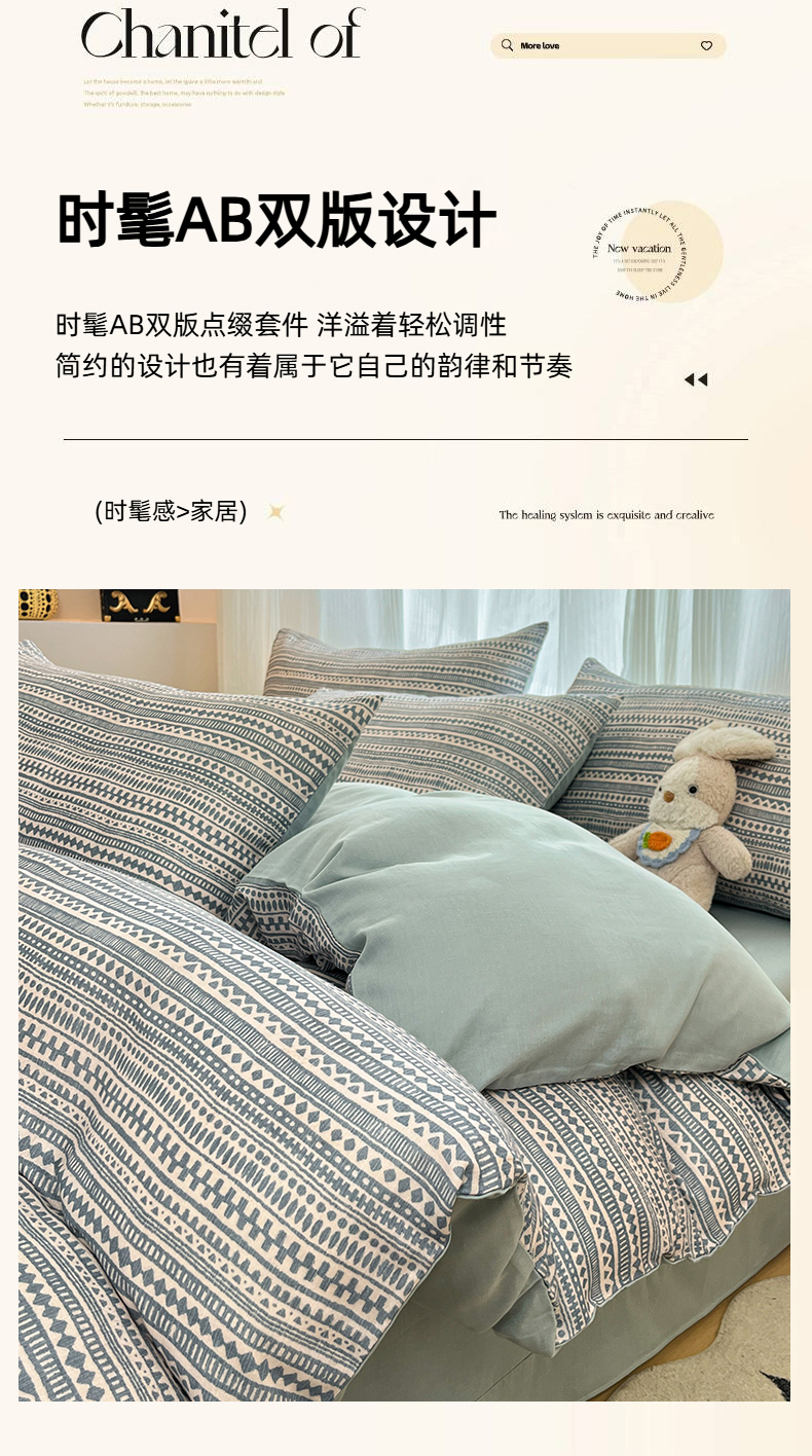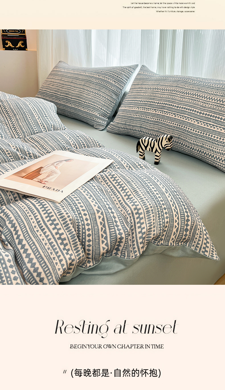 当前位置: 91家纺网 > 商品网购 > 床品套件 > 四件套 > 全棉普通四件套 > 禾时 2026新款A类波西米亚全棉纯棉双层纱四件套 波西米亚-水蓝