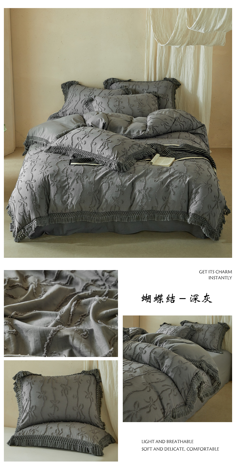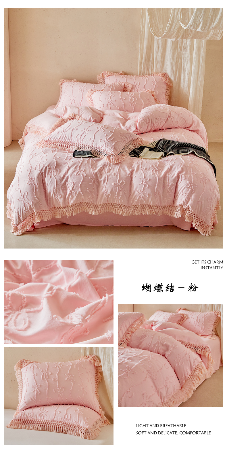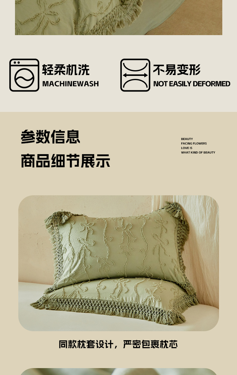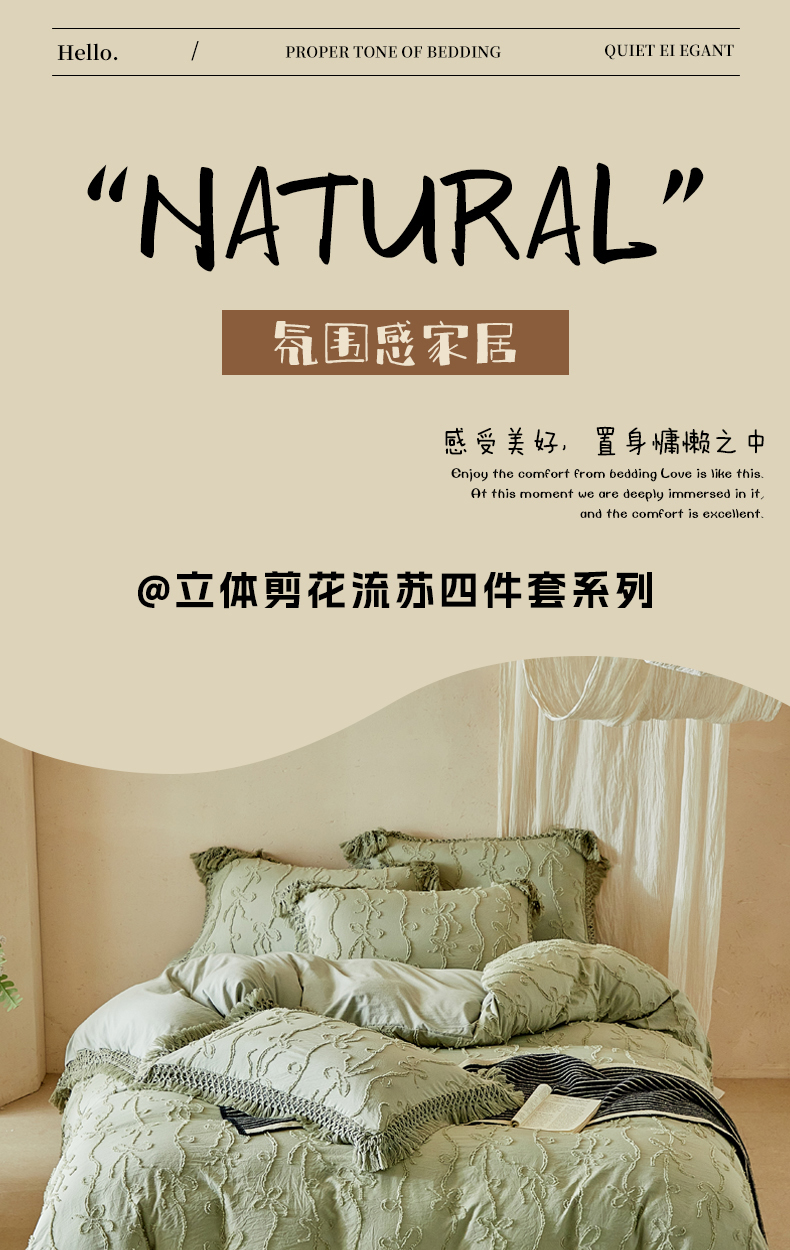 当前位置: 91家纺网 > 商品网购 > 床品套件 > 四件套 > 其它四件套 > 缘生活 2026春夏新款民宿立体剪花蝴蝶结流苏四件套 剪花竖条纹蝴蝶结流苏抹茶绿
