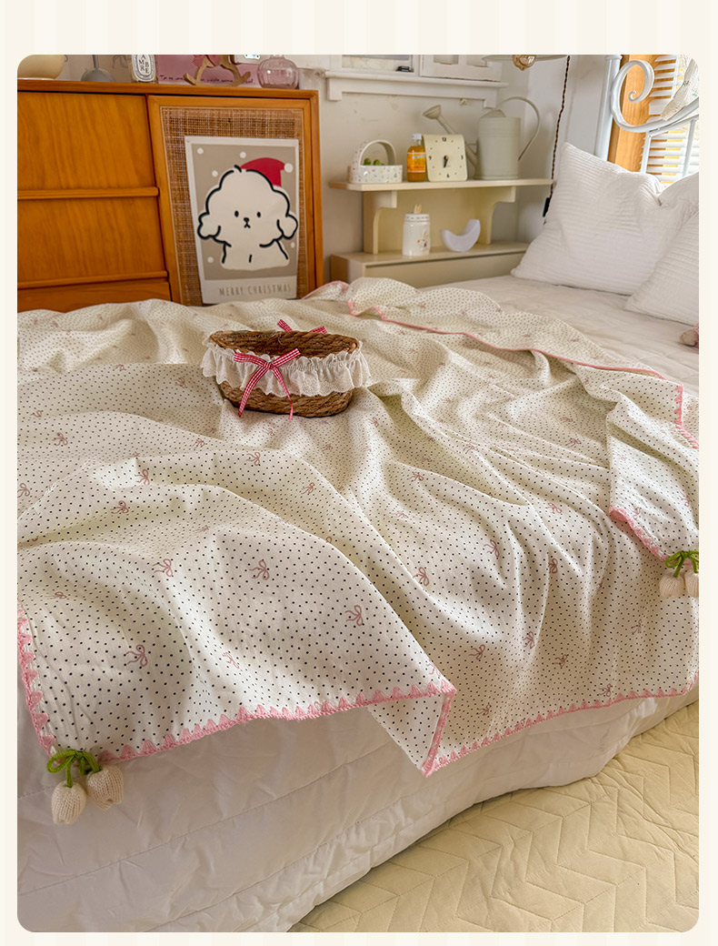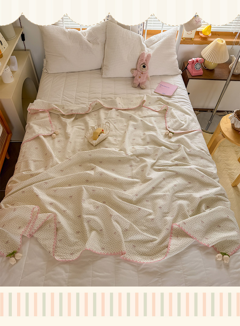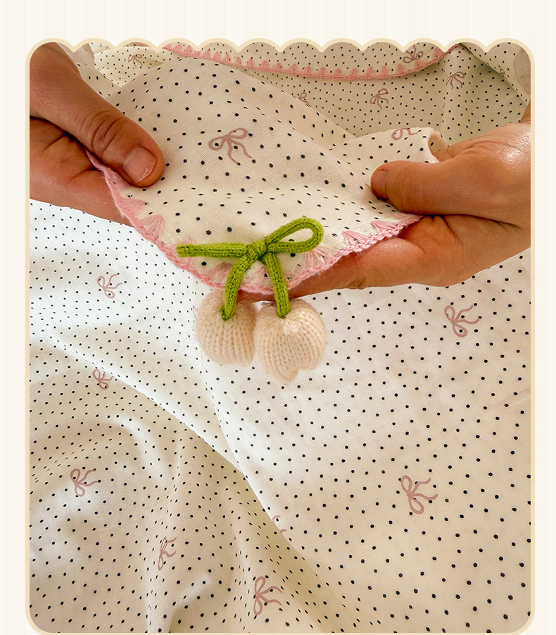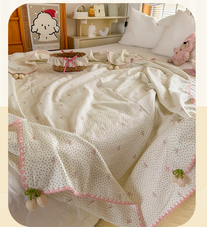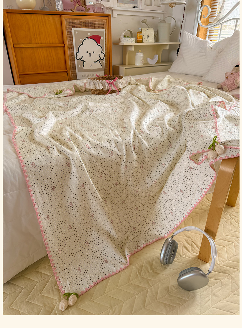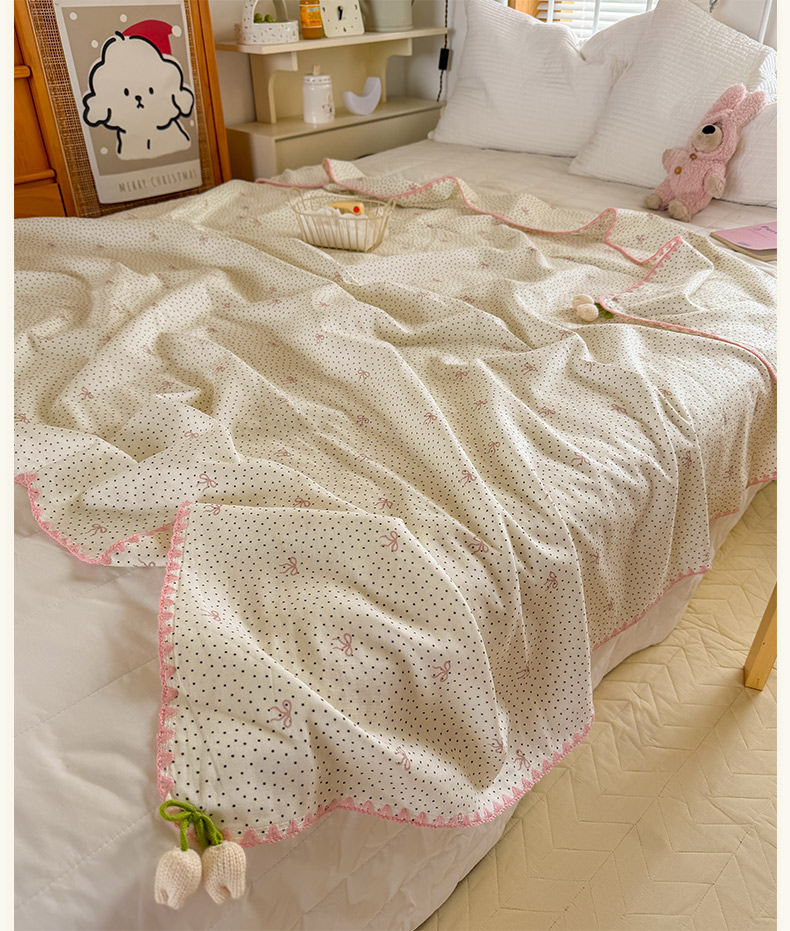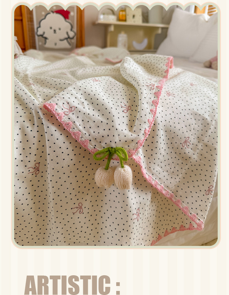 潮邦创意家居 2026新A类全棉双层纱三角针四角郁金香吊坠盖毯—郁金纱语系列【含A类检测报告】 黑点粉结