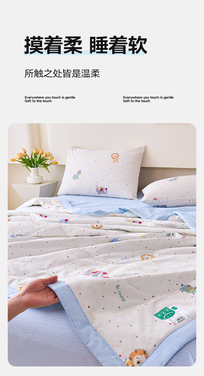 • 91家纺网 家纺一手货源 找家纺 薇玛仕 2026夏季新款100%新疆棉花里外全棉夏凉被单双人空调被 班尼小象