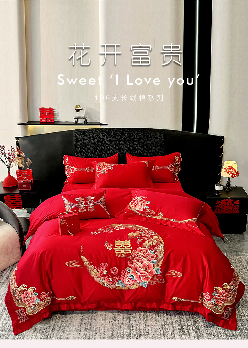 当前位置: 91家纺网 > 商品网购 > 床品套件 > 四件套 > 婚庆四件套 > 甜咪咪婚庆 2026新款长绒棉全棉绣花结婚婚庆四件套多件套床单床盖款 花开富贵