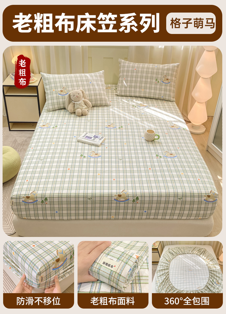 • 91家纺网 家纺一手货源 找家纺 (总)优品惠 2026新款老粗布床笠凉席席子空调软席单品床垫保护套三件套,格子萌马,kt粉,kt蓝,波西米亚,豆蔻,桔灰条纹,可爱星星人,蓝大格,蓝灰卷花,林间小兔,萌兔,青枝漫语,条纹,小南瓜,星星,约定,紫色花语