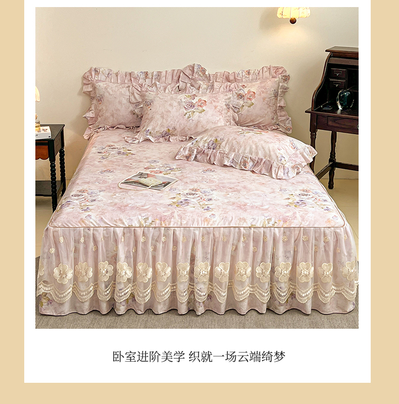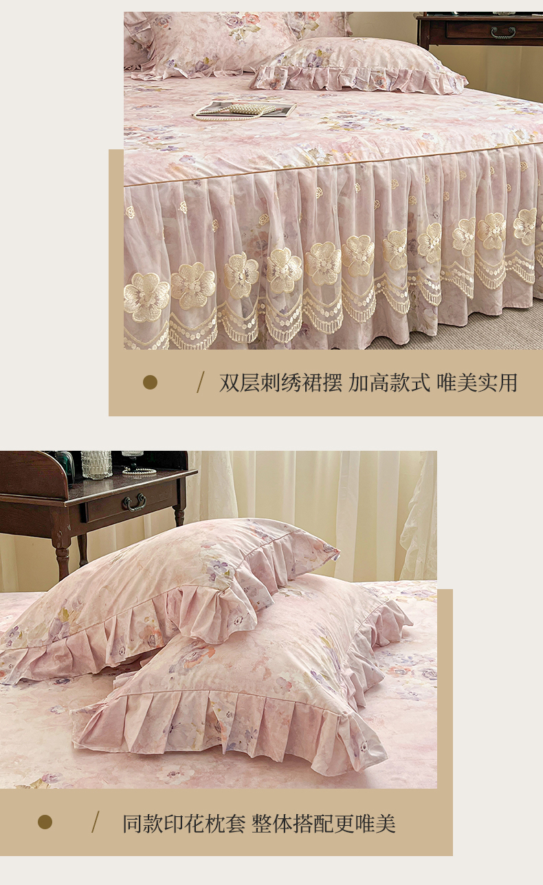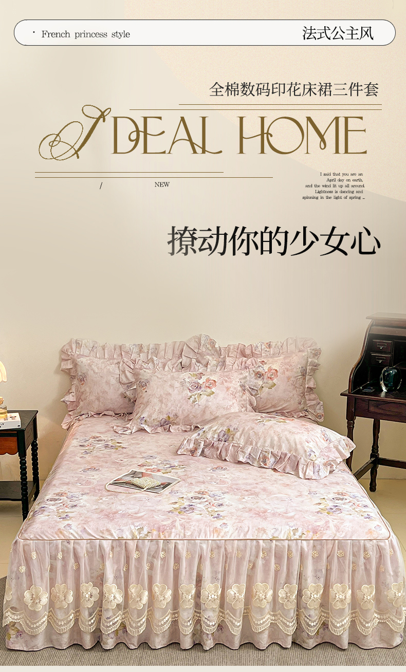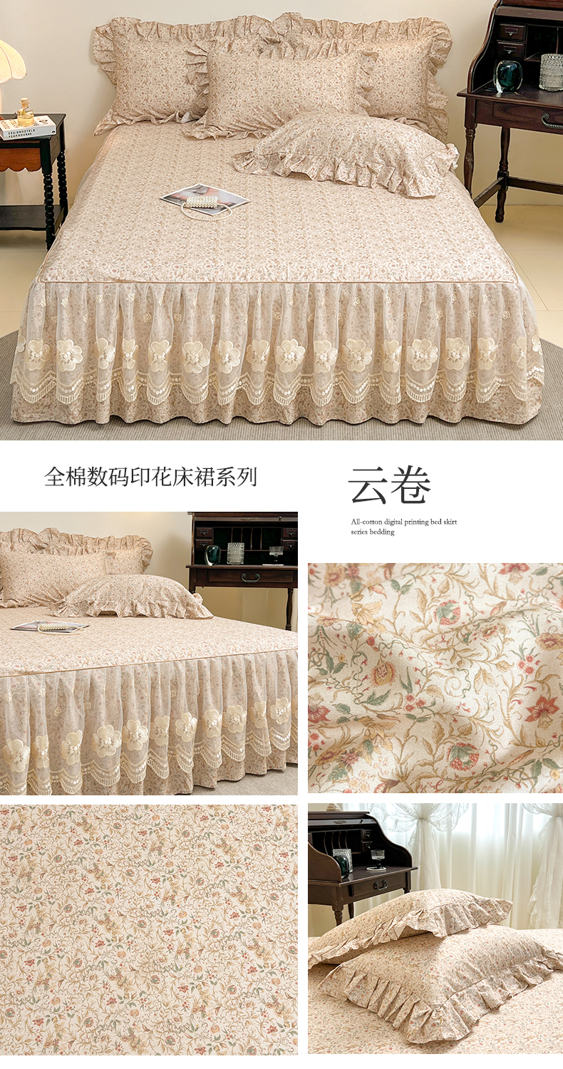 当前位置: 91家纺网 > 商品网购 > 床品套件 > 四件套 > 全棉普通四件套 > 宜凡家纺 2026新款全棉数码印花单层床裙三四件套①号系列三件套 香雪海