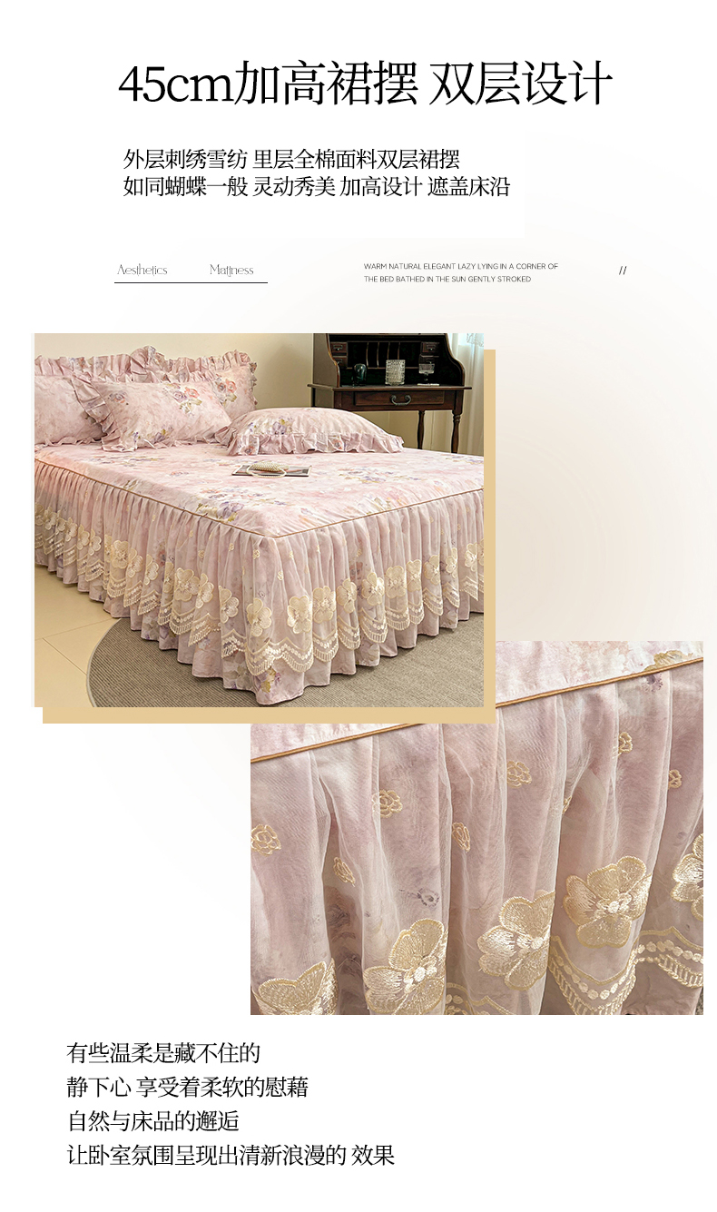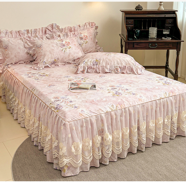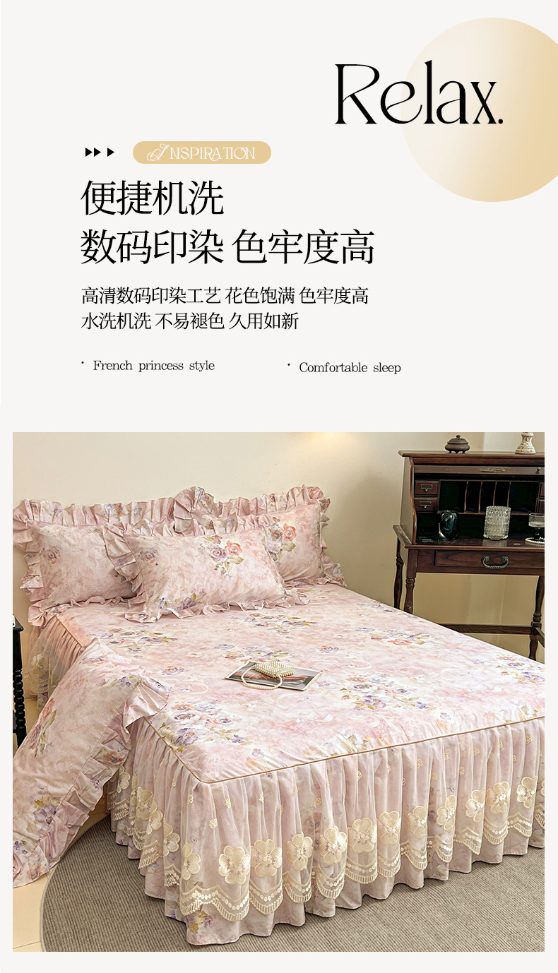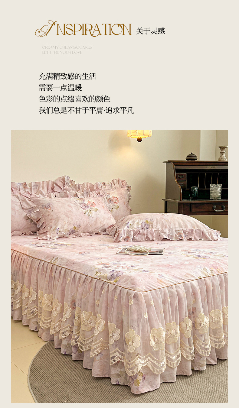当前位置: 91家纺网 > 商品网购 > 床品套件 > 四件套 > 全棉普通四件套 > 宜凡家纺 2026新款全棉数码印花单层床裙三四件套①号系列三件套 香雪海
