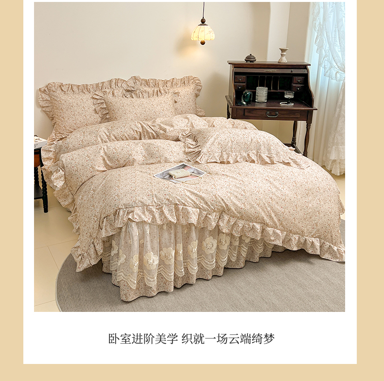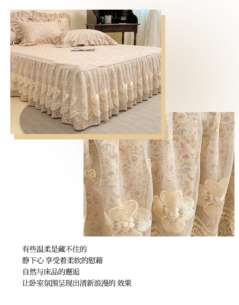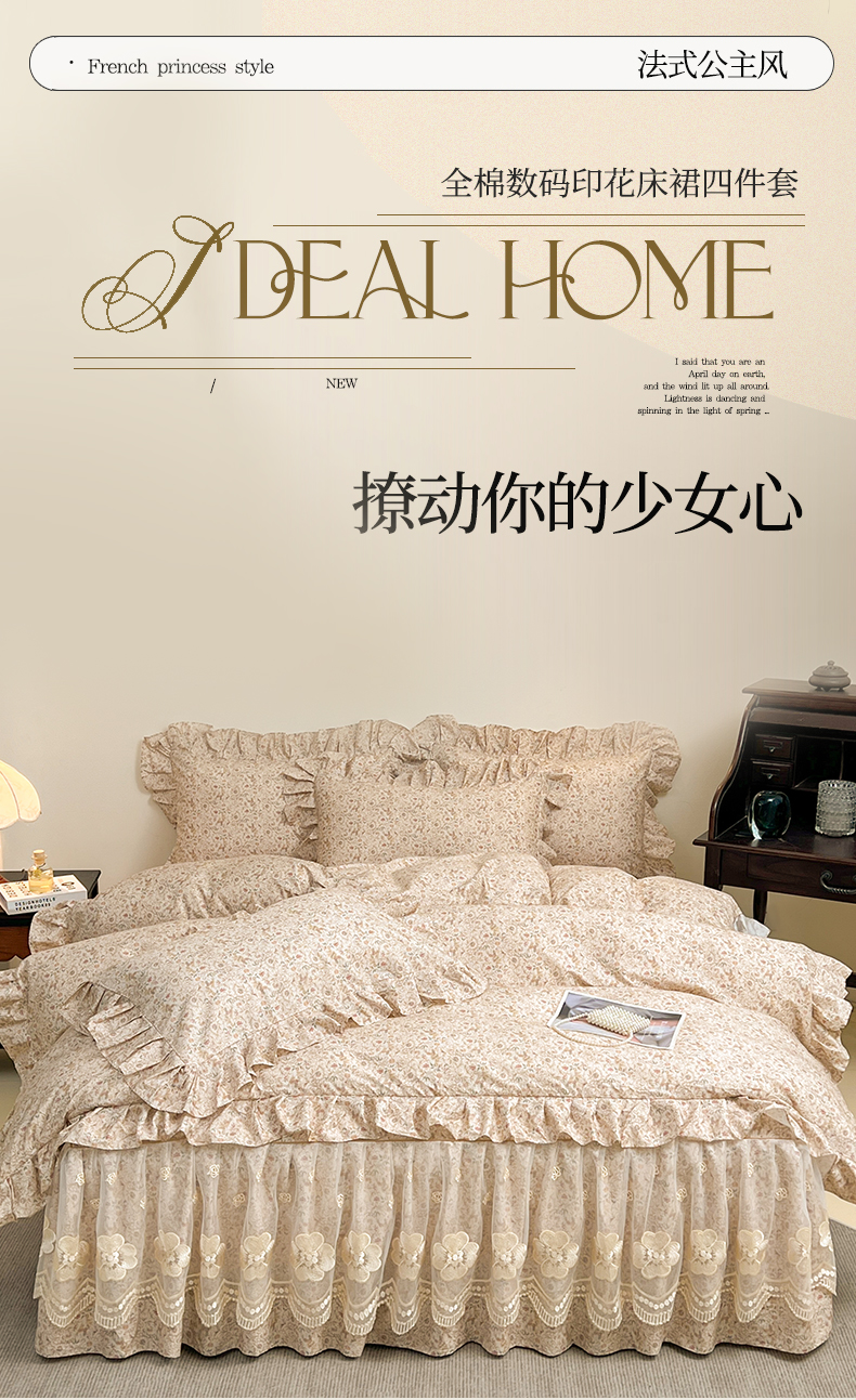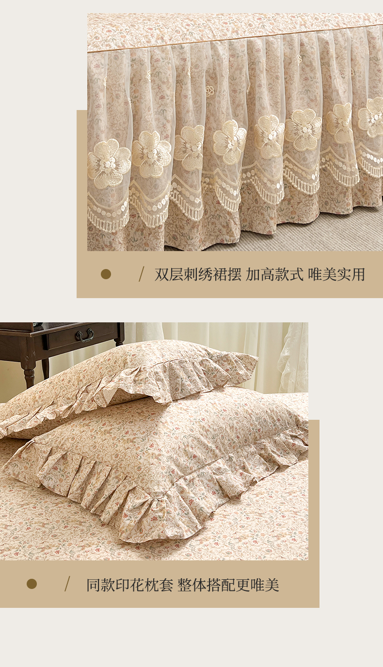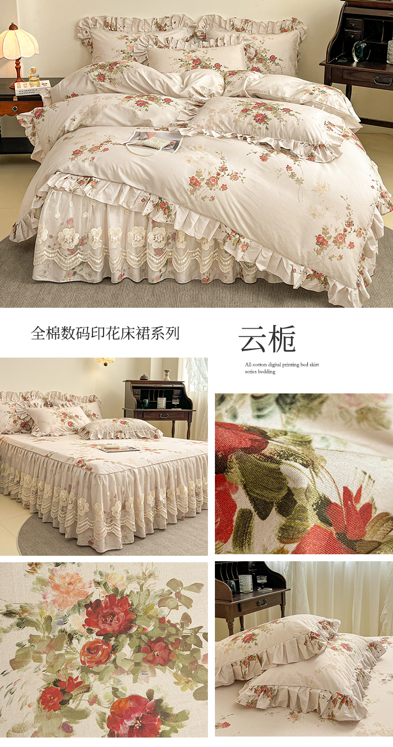 当前位置: 91家纺网 > 商品网购 > 床品套件 > 四件套 > 全棉普通四件套 > 宜凡家纺 2026新款全棉数码印花单层床裙三四件套①号系列四件套 云卷