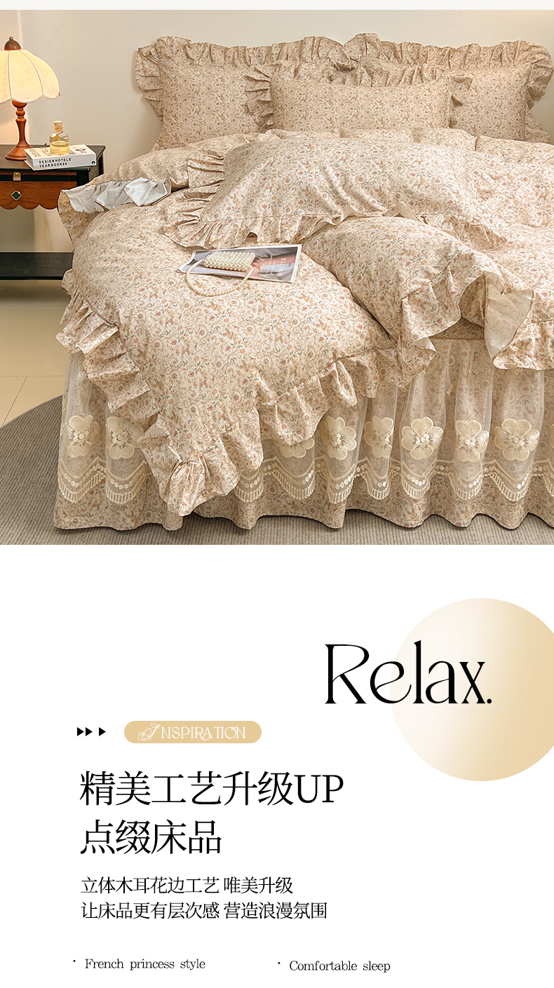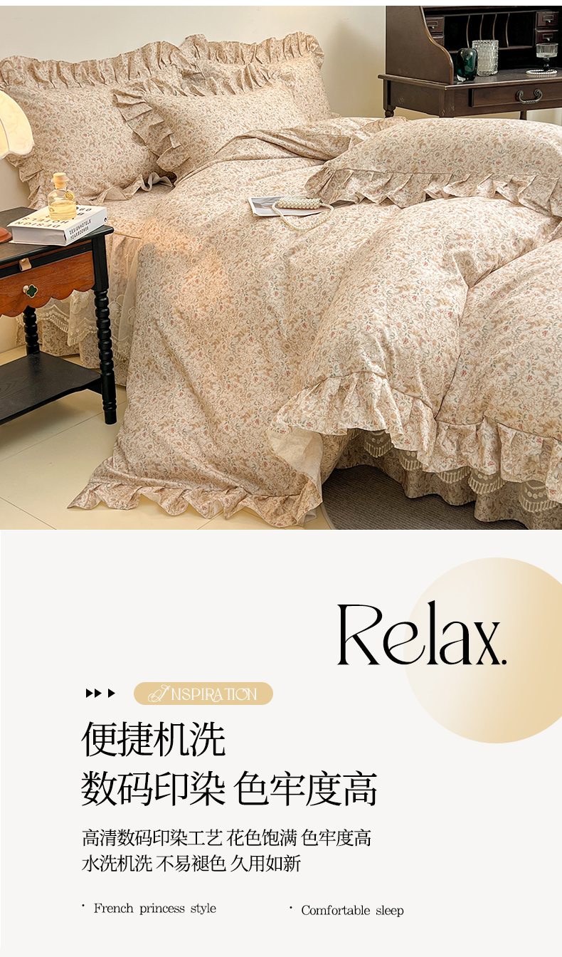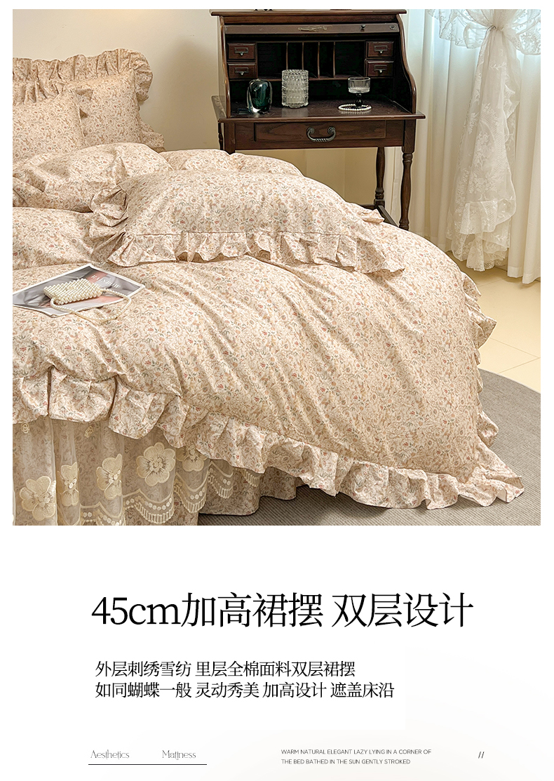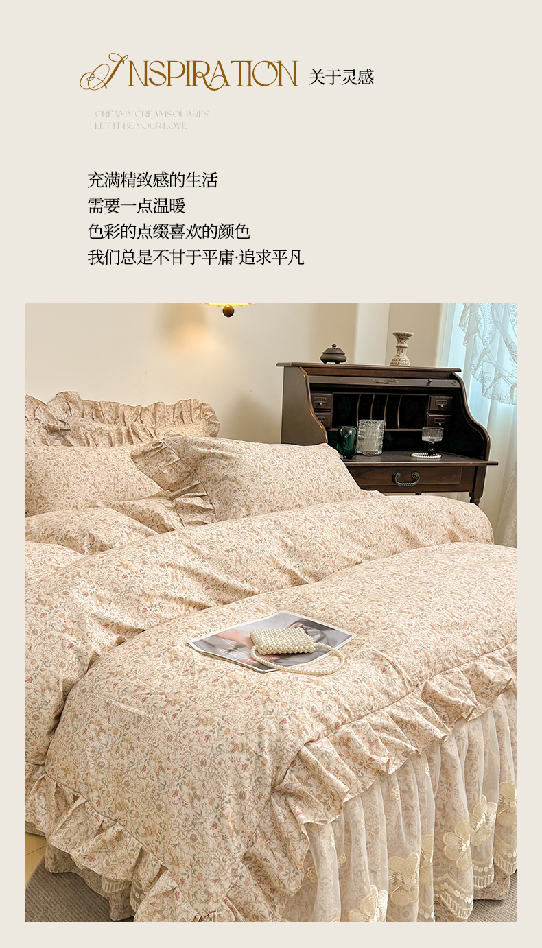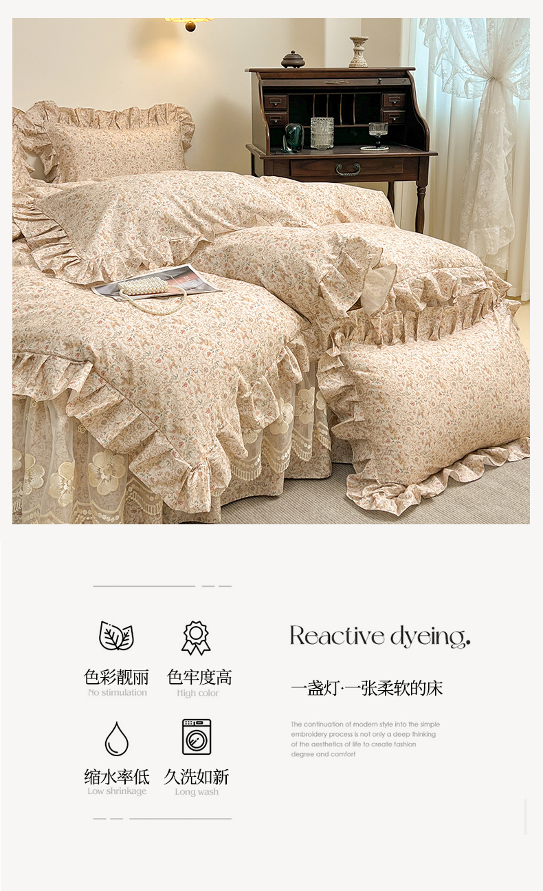 当前位置: 91家纺网 > 商品网购 > 床品套件 > 四件套 > 全棉普通四件套 > 宜凡家纺 2026新款全棉数码印花单层床裙三四件套①号系列四件套 云卷