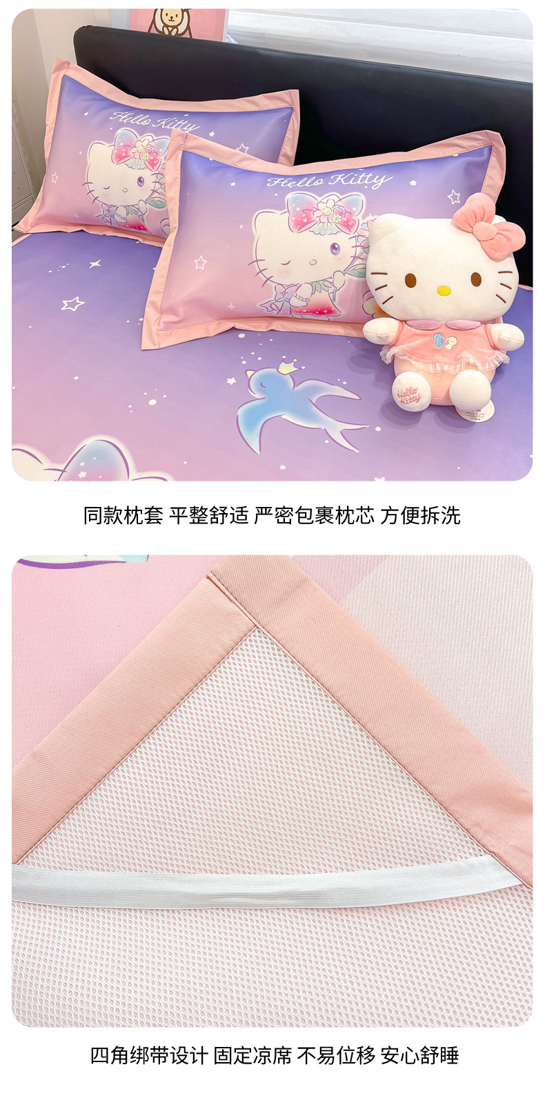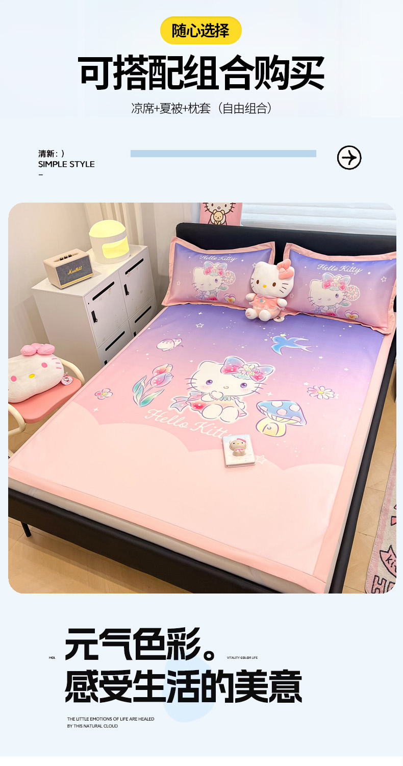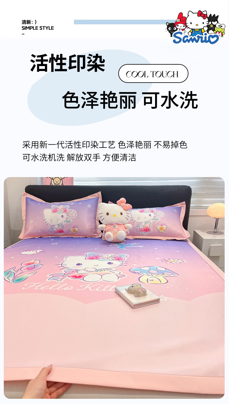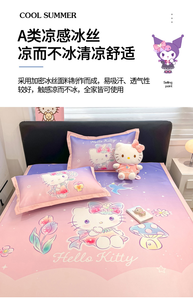 当前位置: 91家纺网 > 商品网购 > 床上用品 > 凉席 > 冰丝席 > 暮思家居 2026新款正版授权A类大版数码印花三丽鸥1200D冰丝凉席可组合仿锦氨夏被 平铺款-梦幻KT