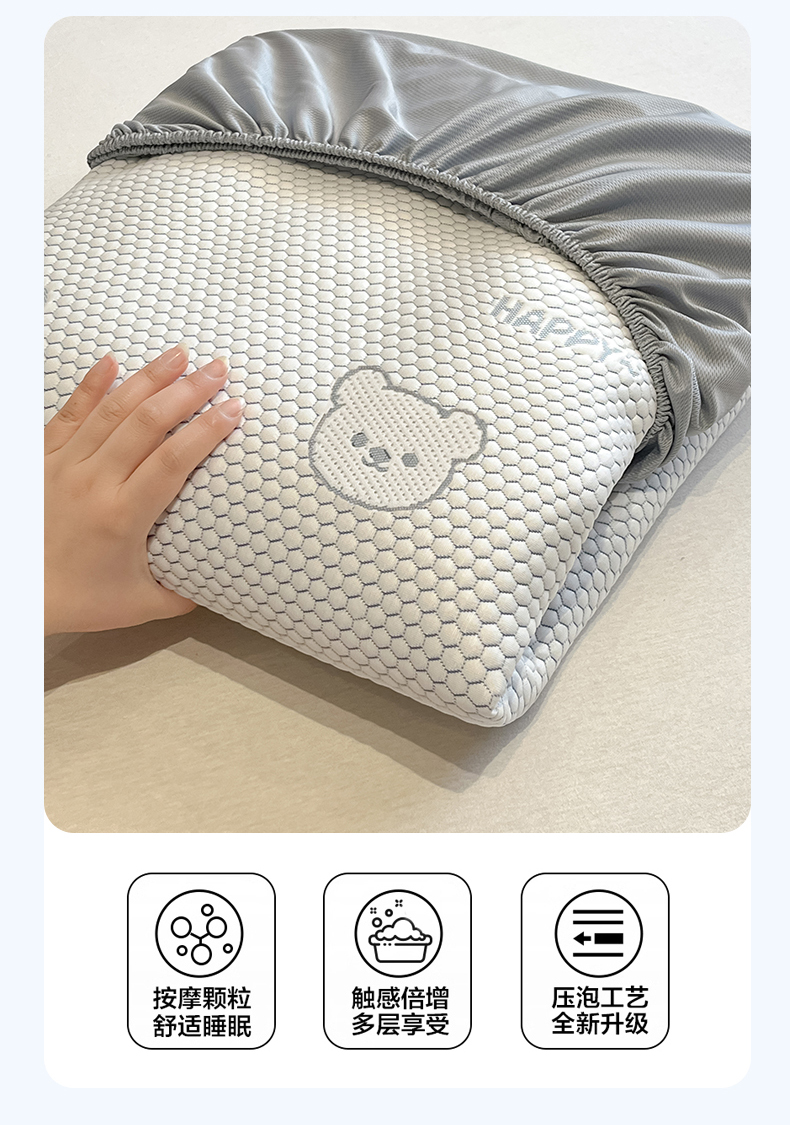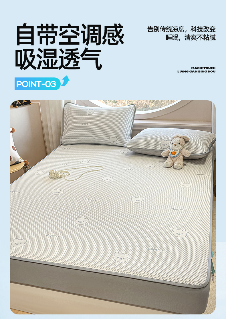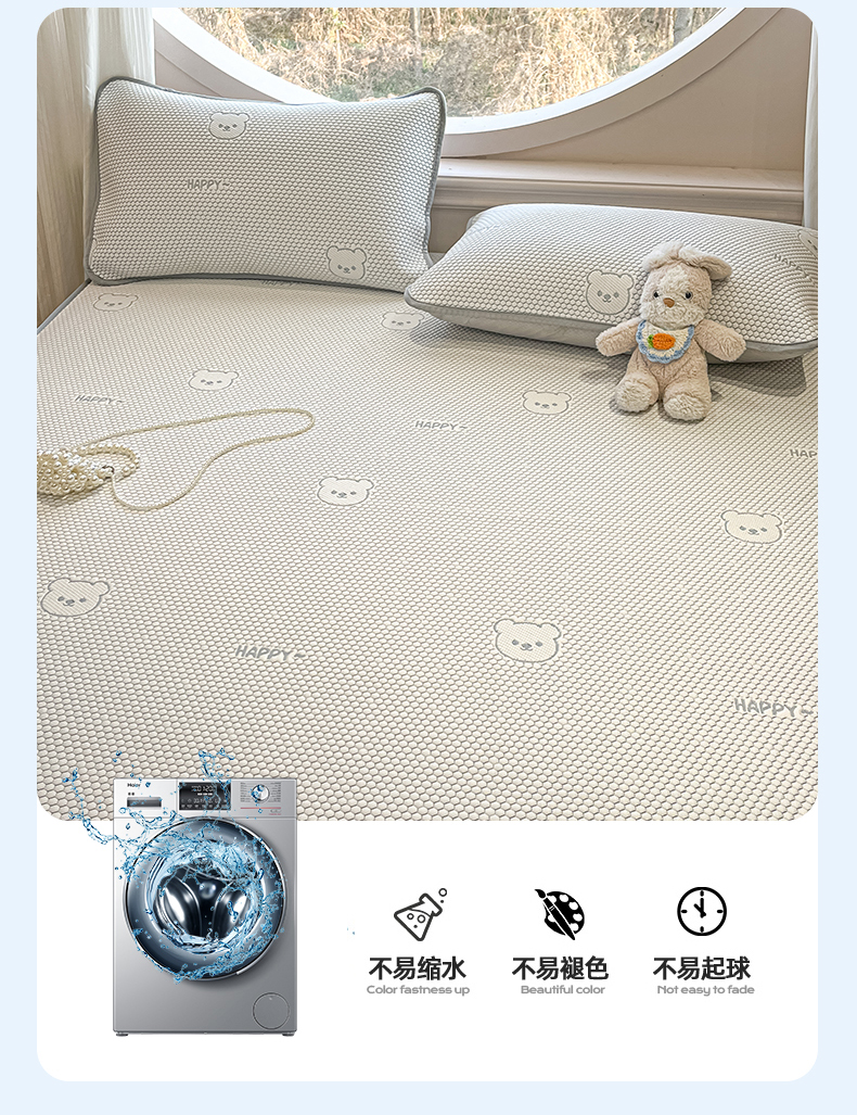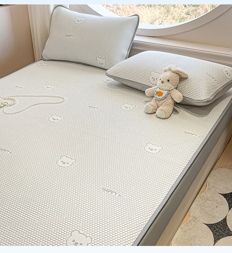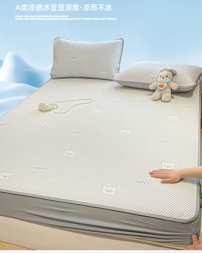 商品名称:天之澜家纺 2026新款PE凉豆豆凉席小红书热卖款A类冰豆豆凉席三件套可水洗豆豆凉席-床笠款 快乐小熊