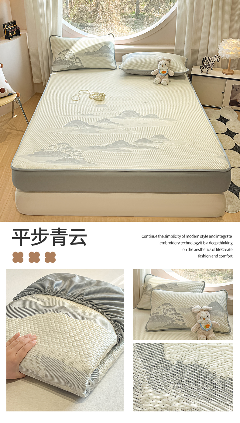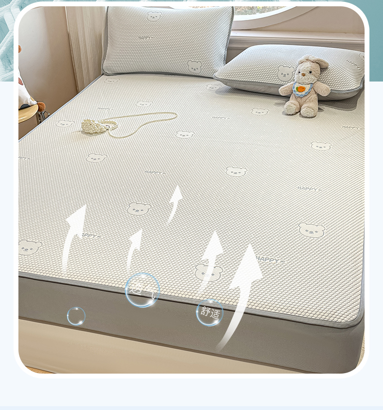 天之澜家纺 2026新款PE凉豆豆凉席小红书热卖款A类冰豆豆凉席三件套可水洗豆豆凉席-床笠款 快乐小熊