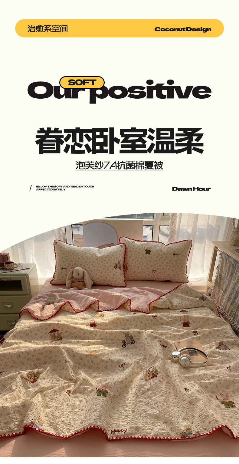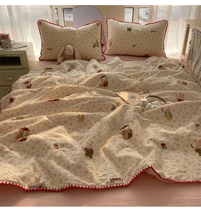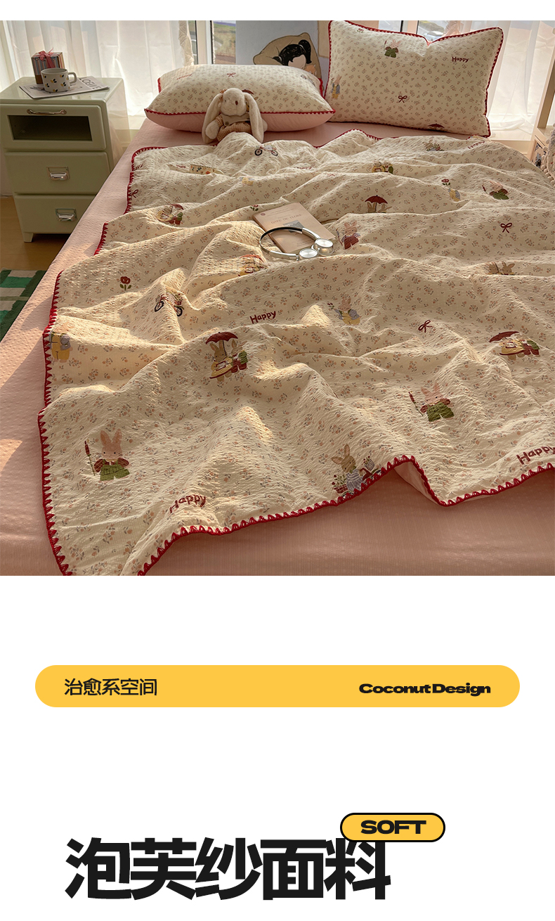 贝扬思家纺 2026新款泡芙纱贝壳边夏被套件-欧包系列(今天也只做被快乐包裹的小朋友) 欧包-躲雨小兔