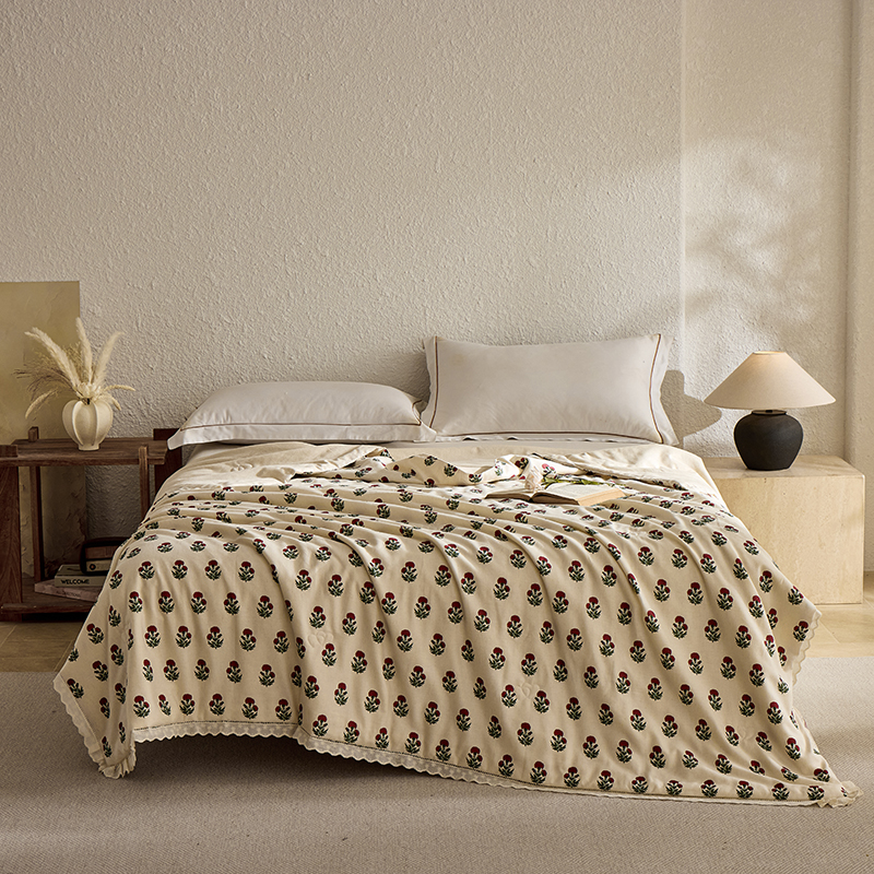 雅高家居 2026新款麻本纪韩版复古雨露棉麻夏被夏凉被空调被子被芯 虞美人