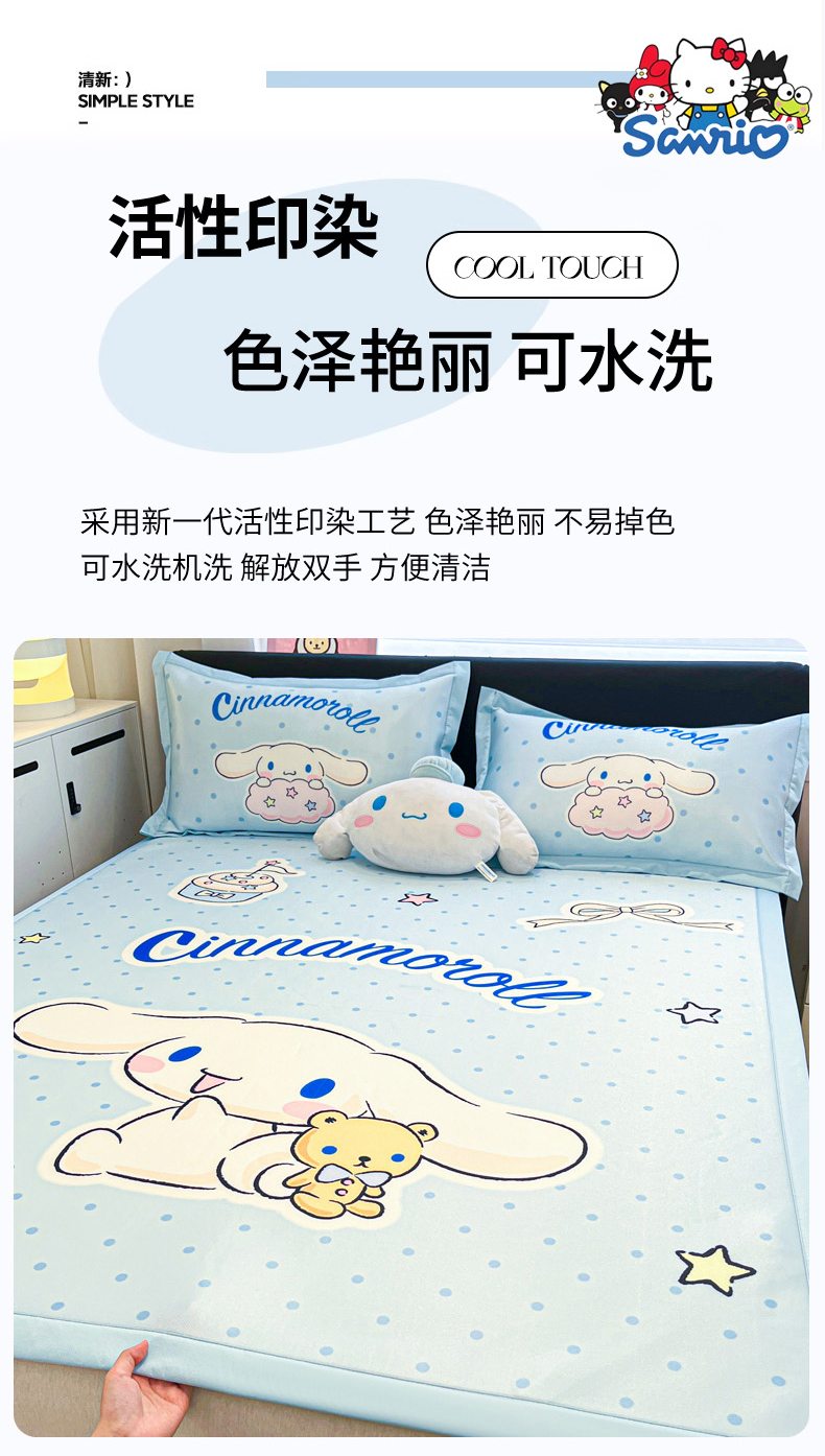 (总)暮思家居 2026新款三丽鸥正版授权数码印花A类可机洗1200D冰丝凉席三件套床笠款系列,床笠款-KT美乐蒂,床笠款-可爱KT,床笠款-巴库库洛米,床笠款-点点玉桂狗,床笠款-粉格KT,床笠款-公主KT,床笠款-乖巧KT,床笠款-蝴蝶结美乐蒂,床笠款-花花美乐蒂,床笠款-凯蒂乐园,床笠款-蓝格KT,床笠款-蓝色玉桂狗,床笠款-气球库洛米,床笠款-甜品玉桂狗,床笠款-甜甜库洛米,床笠款-甜筒KT,床笠款-洋娃娃美乐蒂,床笠款-云朵大耳狗