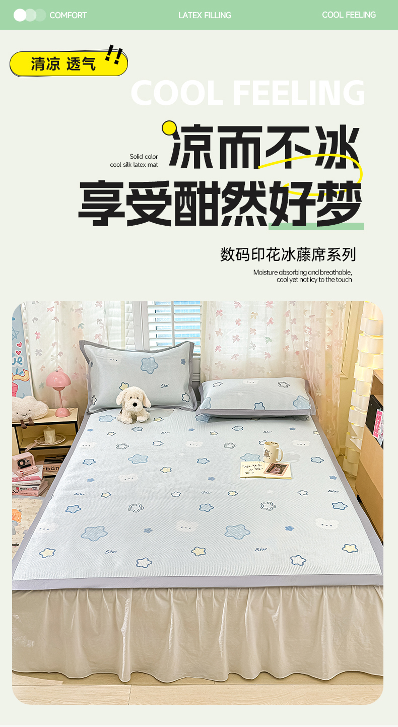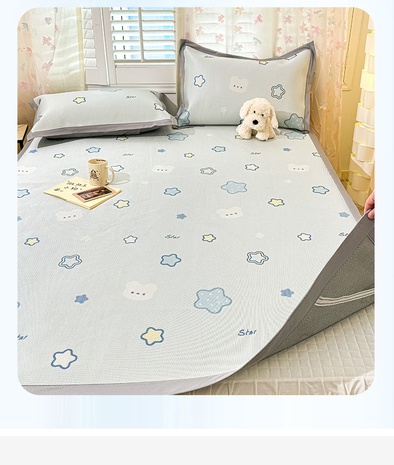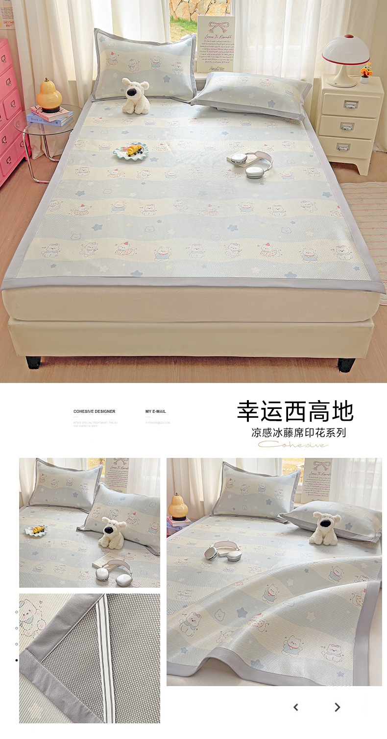 商品名称:川悦生活 2026新款时尚数码印花冰藤席 星塔小熊