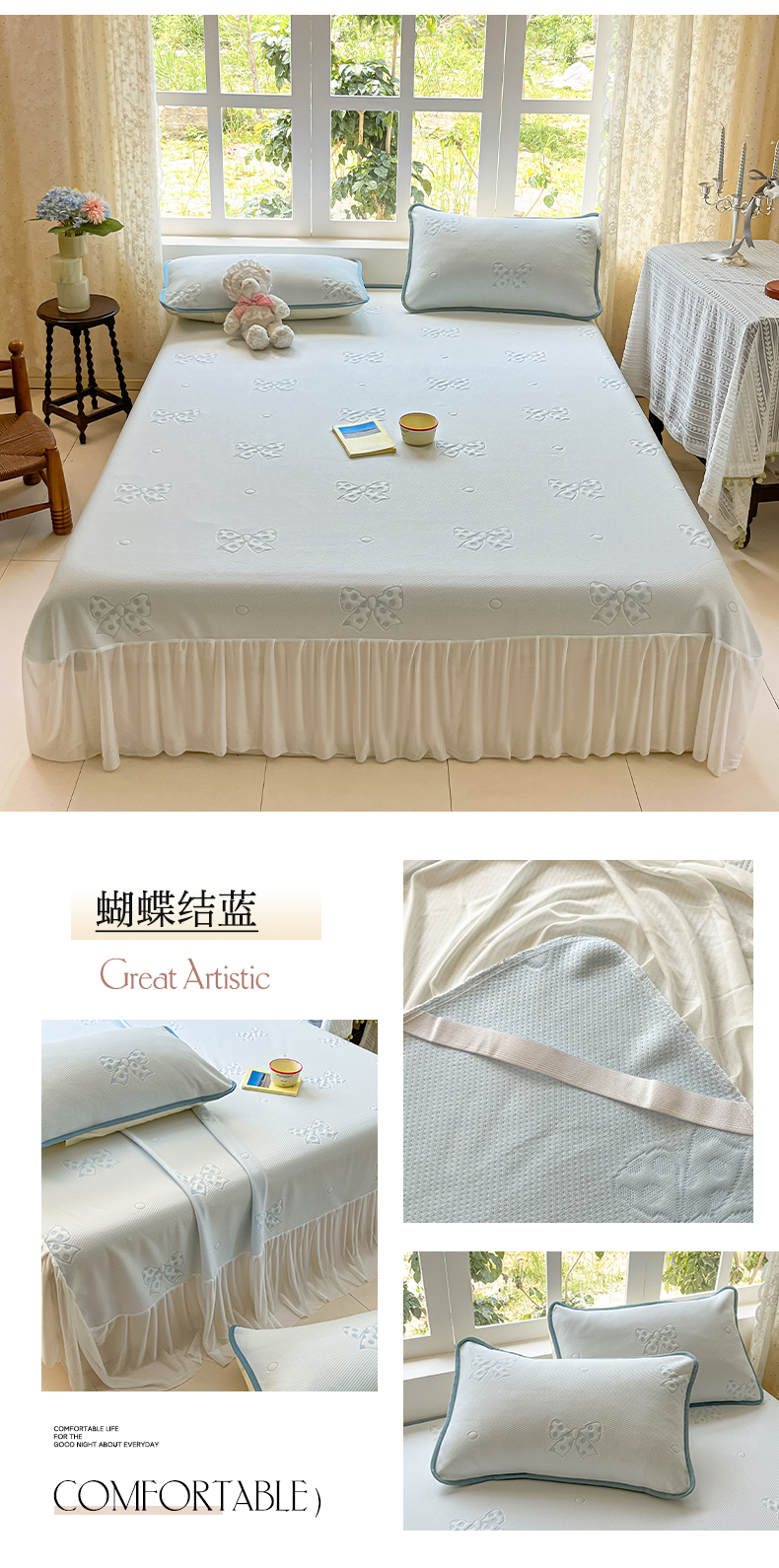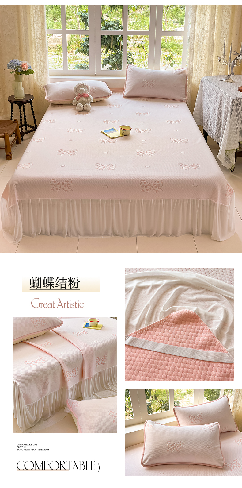 (总)悦织湾家纺 2026新款提花凉豆豆凉席三件套夏季3D豆豆席冰爽席子床笠款蝴蝶结小熊系列,暴力熊粉,暴力熊灰,暴力熊蓝,暴力熊绿,蝴蝶结粉,蝴蝶结灰,蝴蝶结蓝,蝴蝶结绿