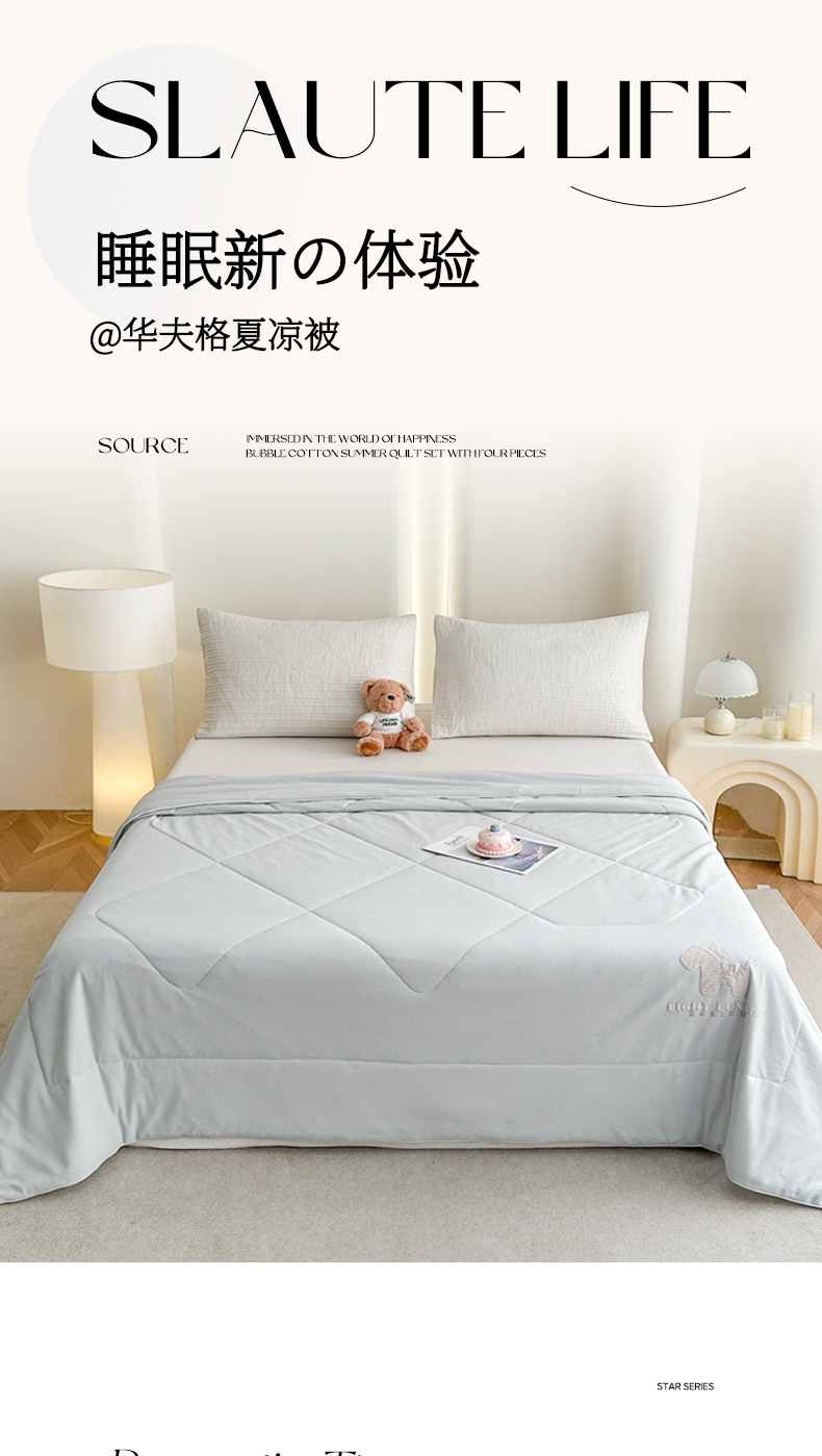 (总)宇淳国际 2026新款凉感丝夏被被子被芯系列,奶油杏+水绿,浅咖+绅士灰,绅士灰,天空蓝+绅士灰,珍珠白