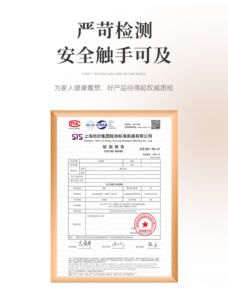 4、通州区市场监管局川姜分局友情提醒:近期针对抗静电,无静电,抗菌防螨,及有关舒适度,百分比的举报高发。为不影响商品正常销售,请各商家高度重视,自检自查及时整改,谢谢配合!