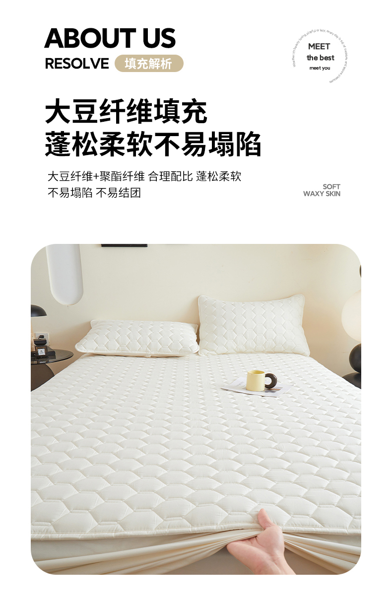 雅萱家纺 2026新款全棉大豆夹棉床笠单品床笠床笠单件 全棉床笠白色