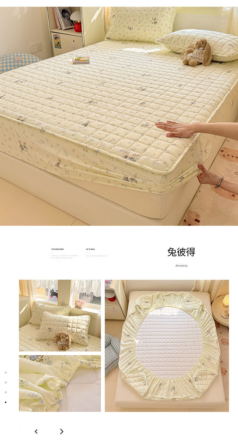(总)雅萱家纺 2026新款全棉大豆夹棉床笠单品床笠床笠单件,全棉床笠白色,全棉床笠粉色,全棉床笠灰蓝色,全棉床笠灰色,全棉床笠绿色,全棉床笠驼色,洛克庄园红,睡梦熊,兔彼得,心意满满,星星猫