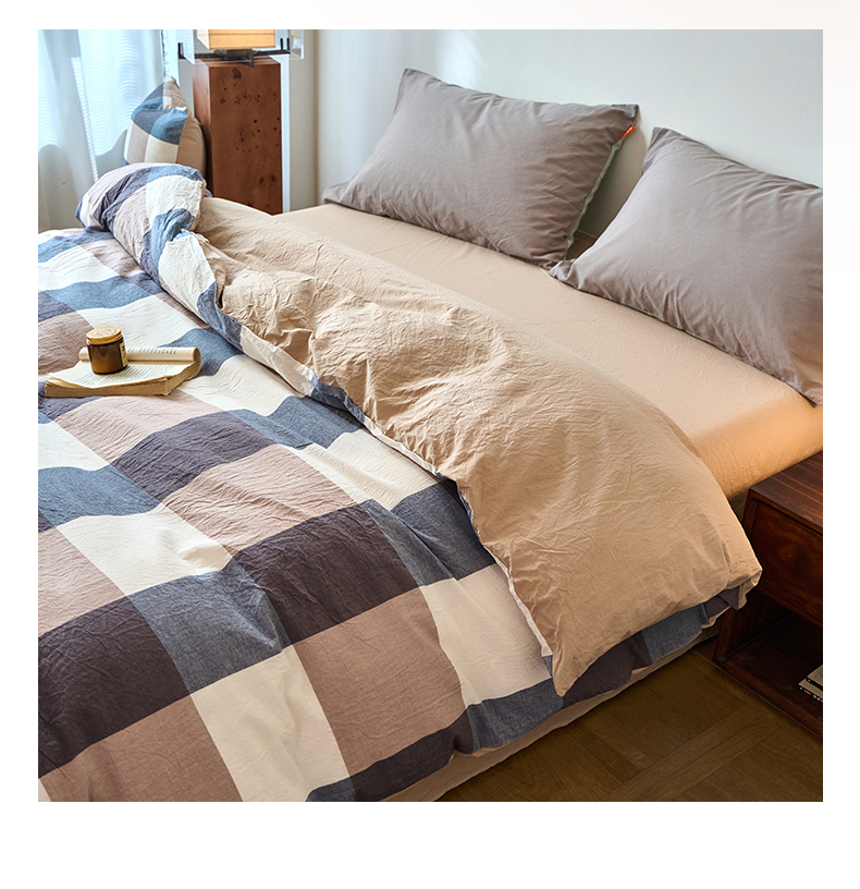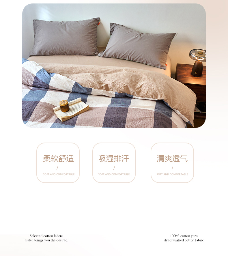 春皖家纺 2026春夏新款全棉纯棉水洗棉单被套被套单件单品被套 素雅-蓝大格