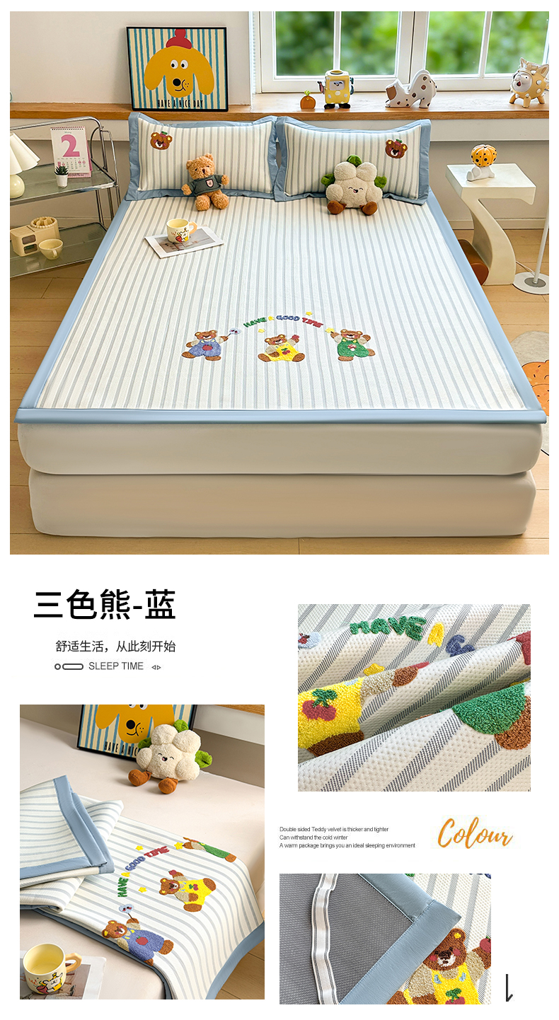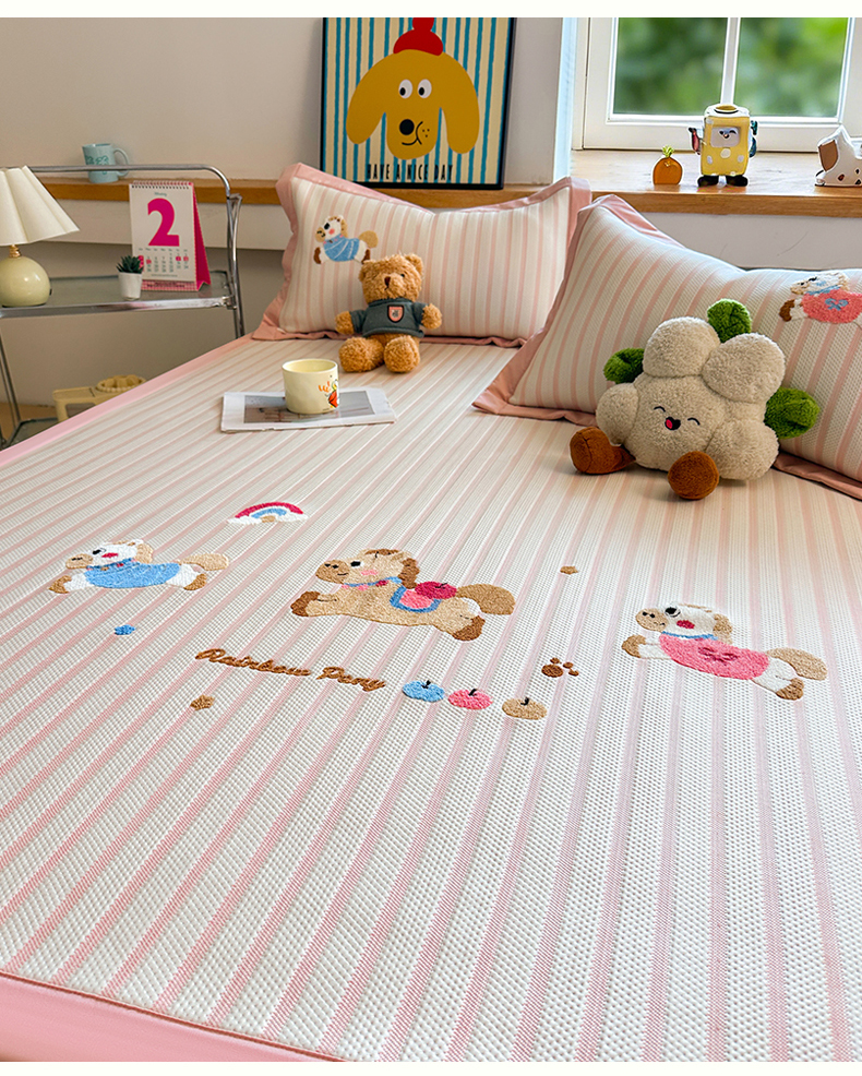 商品名称:(总)雯豆家纺 2026新款PE中分子毛巾绣凉席三件套平铺席子卡通绣花条席