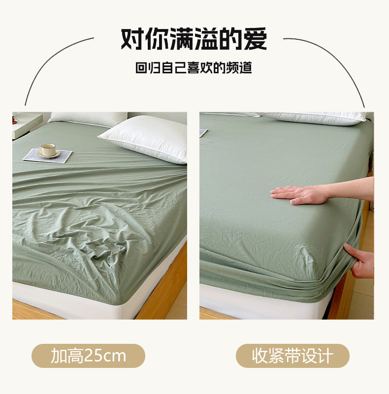 春皖家纺 2026春夏新款全棉纯棉水洗棉单品系列床笠单件床笠单品-B版单床笠 素雅军绿