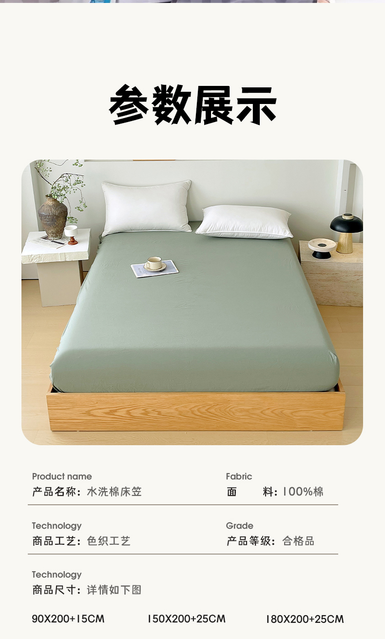 商品名称:春皖家纺 2026春夏新款全棉纯棉水洗棉单品系列床笠单件床笠单品-B版单床笠 素雅军绿