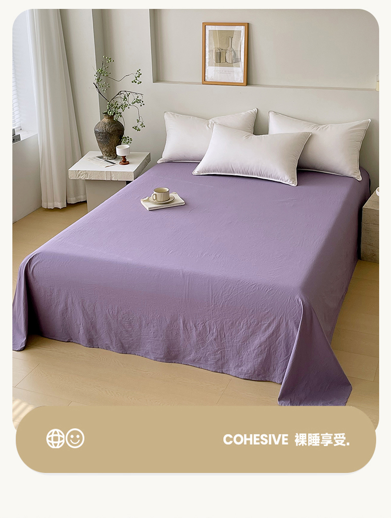 春皖家纺 2026春夏新款全棉纯棉水洗棉单品系列床单单件床单单品-B版单床单 水晶紫