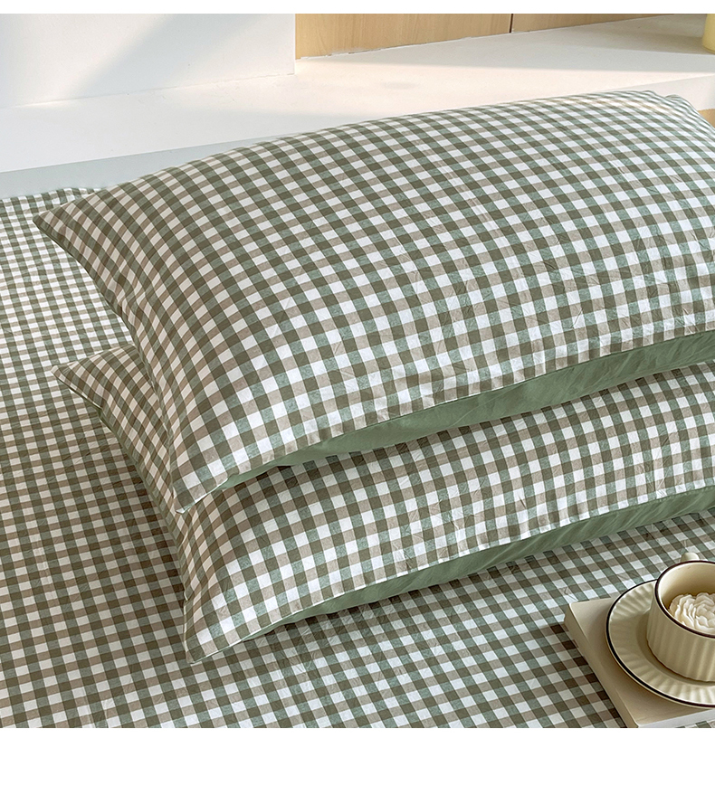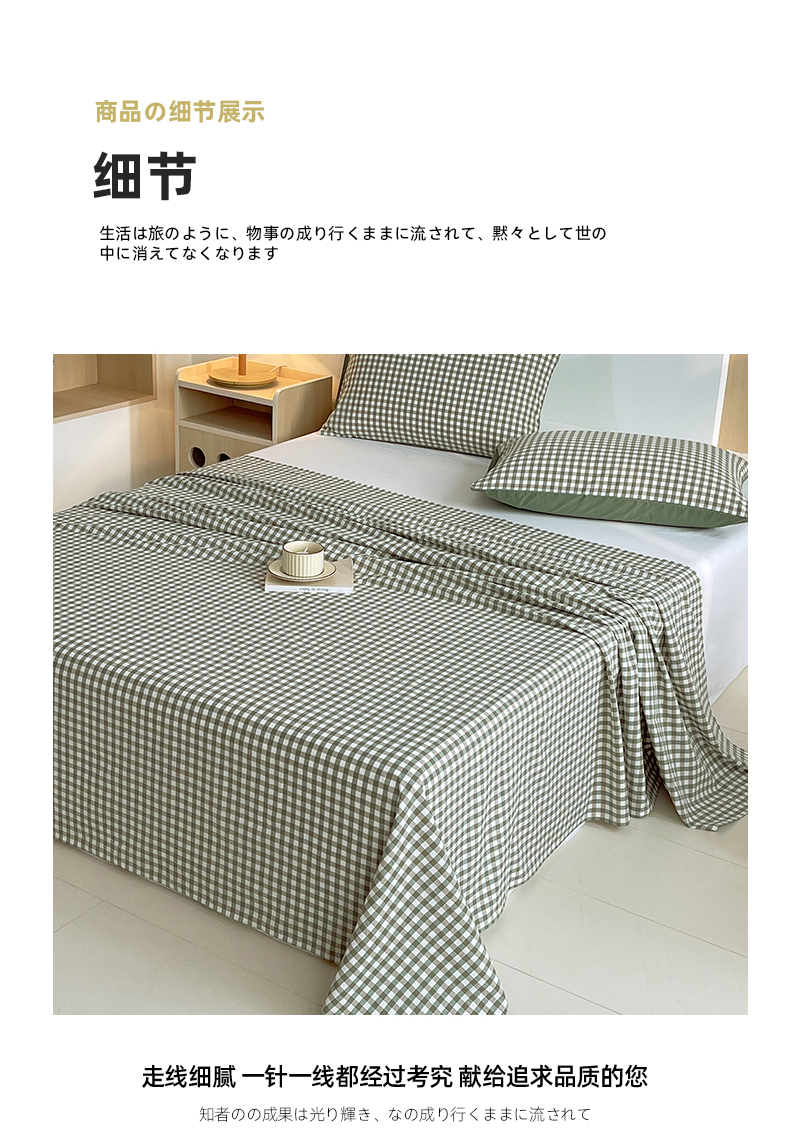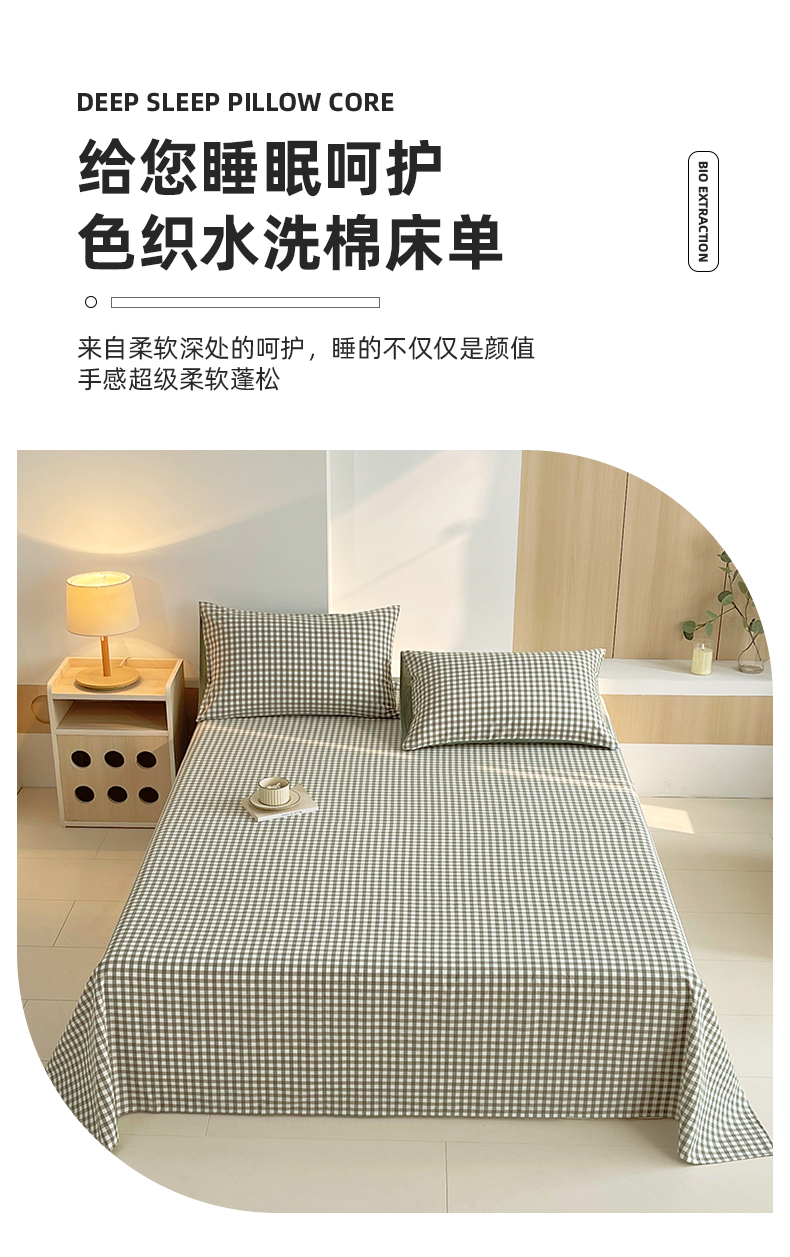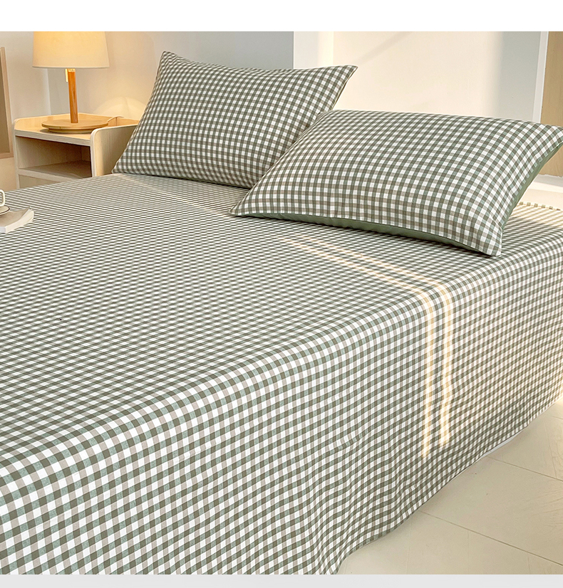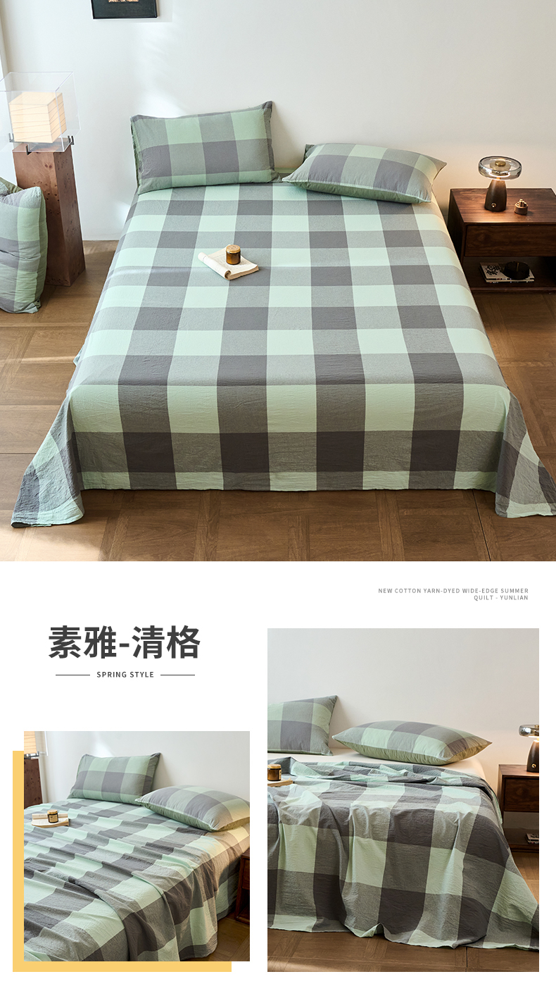 春皖家纺 2026春夏新款全棉纯棉水洗棉单品系列床单单件床单单品-A版单床单 素雅-绿格