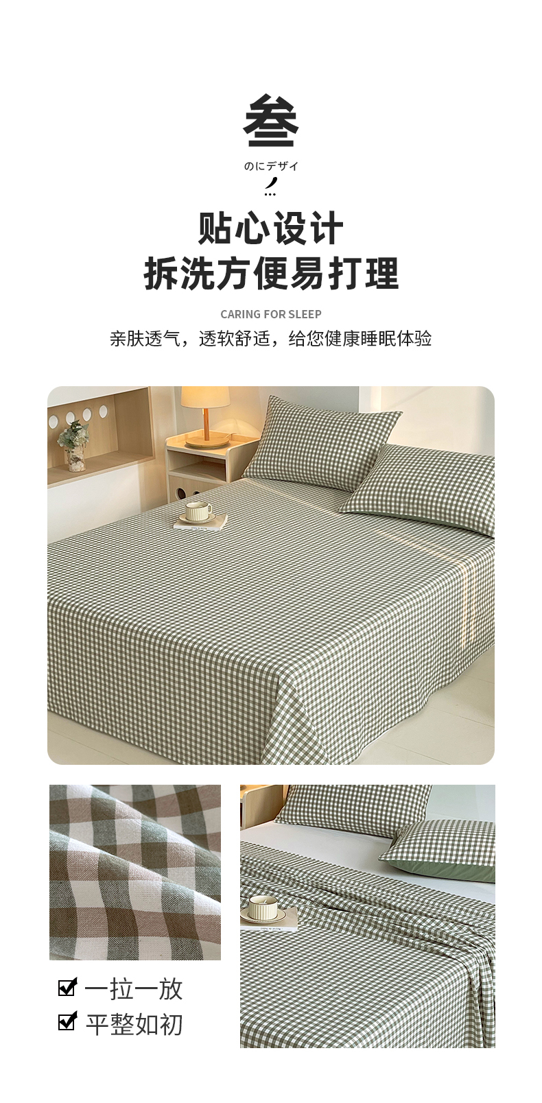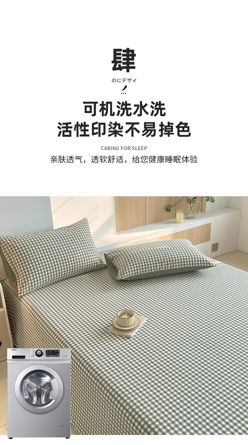 商品名称:春皖家纺 2026春夏新款全棉纯棉水洗棉单品系列床单单件床单单品-A版单床单 素雅-绿格