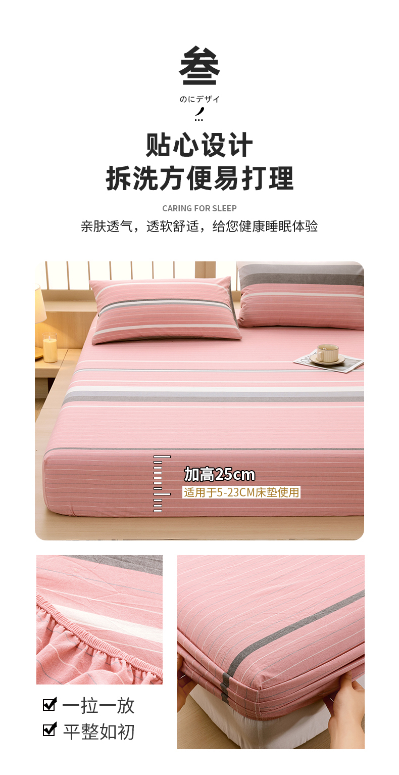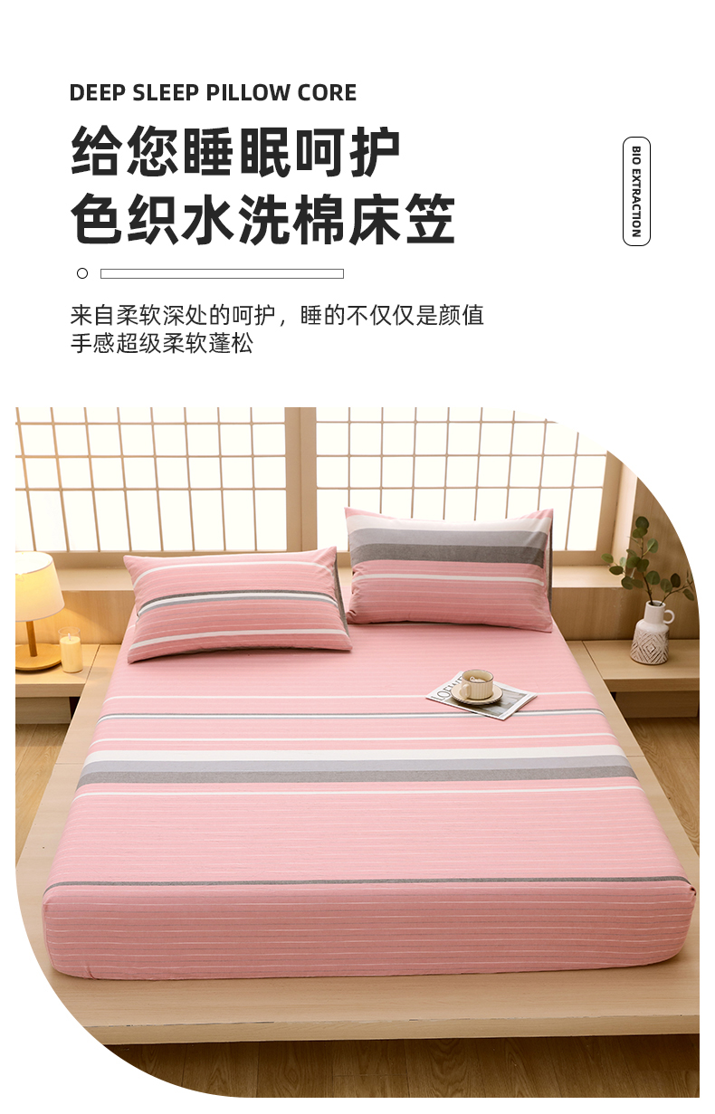 春皖家纺 2026春夏新款全棉纯棉水洗棉单品系列床笠单件床笠单品-A版单床笠 素雅-蔻粉